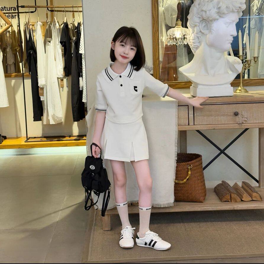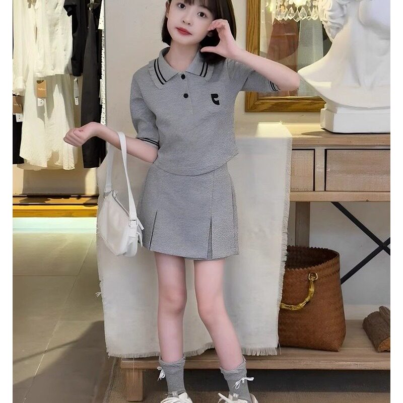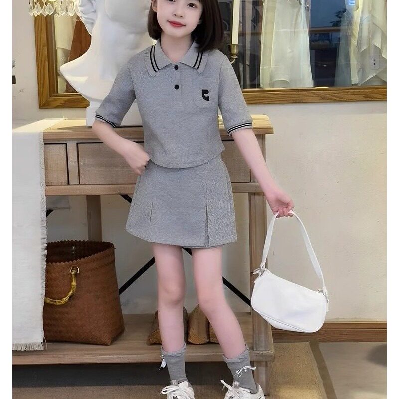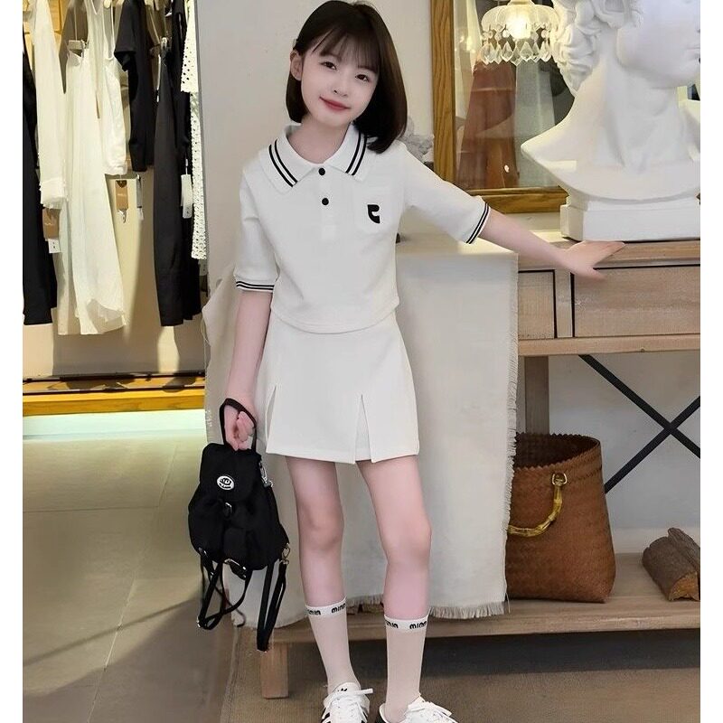 夏季套装女童百搭夏季新款中大童儿童女孩洋气短袖T恤裤裙两件套