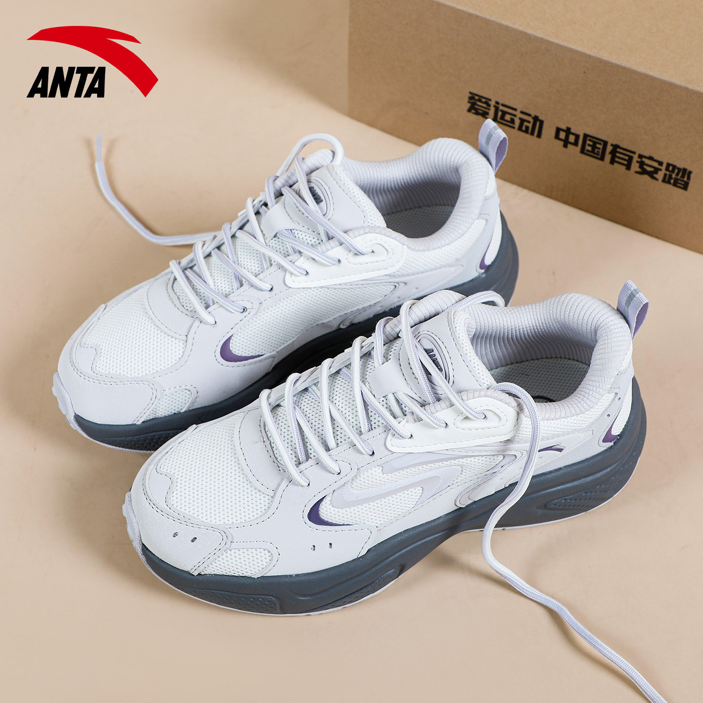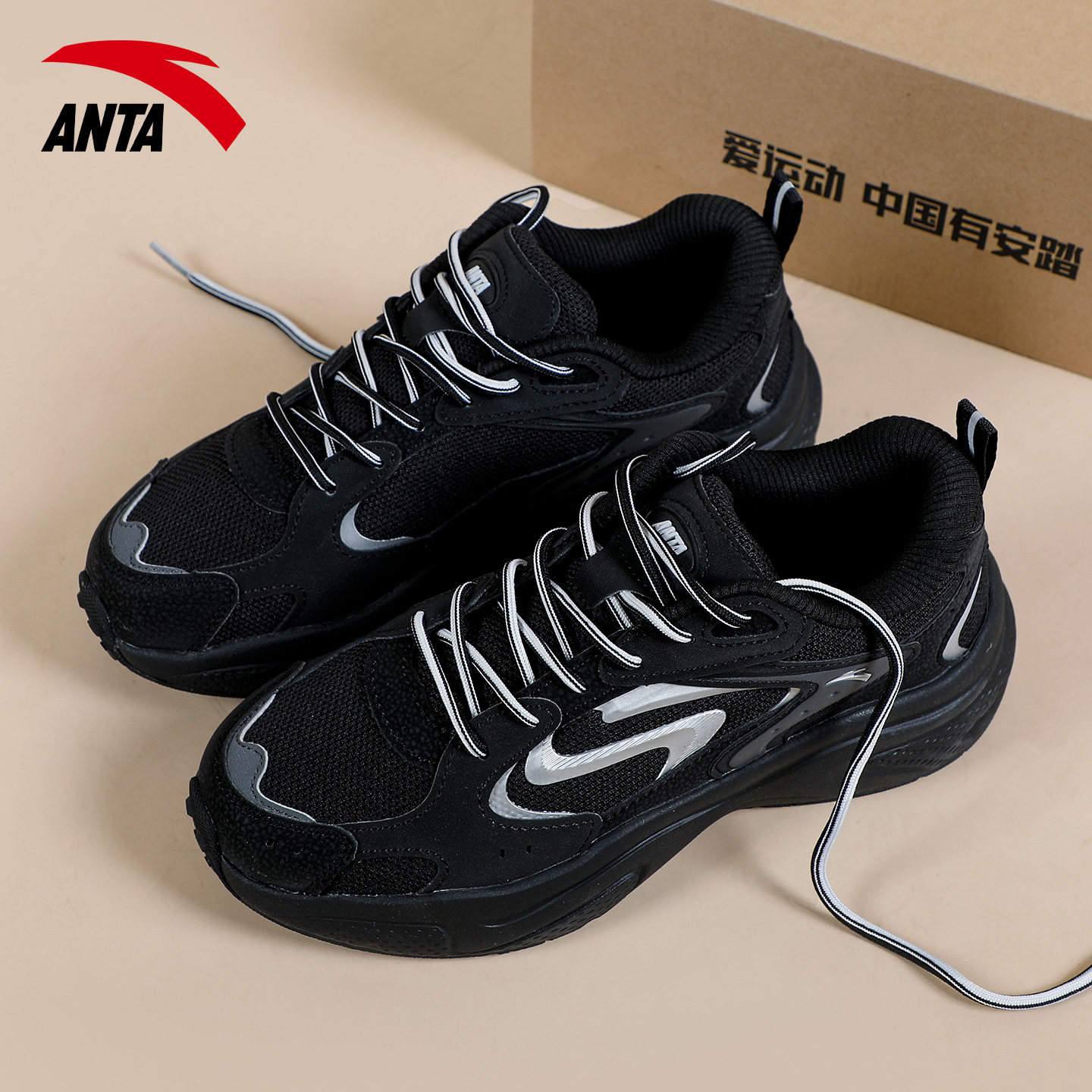 安踏女鞋春季新款鞋子女款厚底增高女士休闲老爹鞋黑色潮流运动鞋
