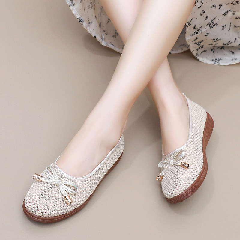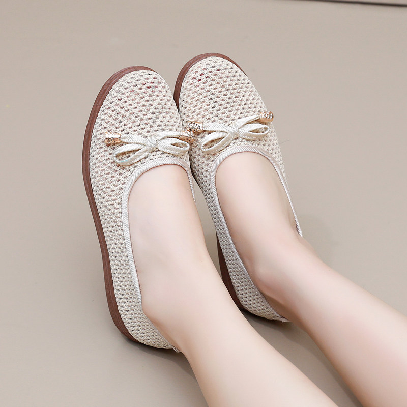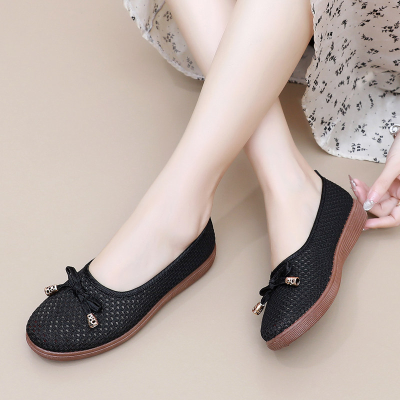 老北京布鞋女鞋夏季网鞋透气软底防滑工作鞋一脚蹬飞织网布妈妈鞋