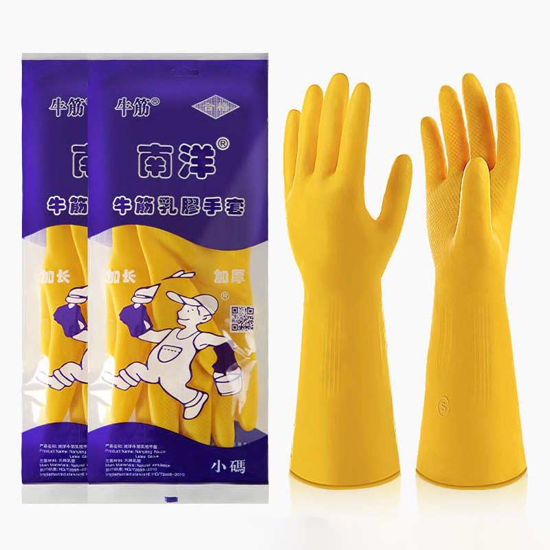 正品南洋牛筋乳胶橡胶手套劳保工作耐磨加厚防水家务厨房耐用胶皮