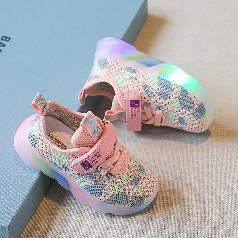 儿童运动鞋带灯中小童鞋男童女童宝宝休闲鞋子网面透气飞织洞洞鞋