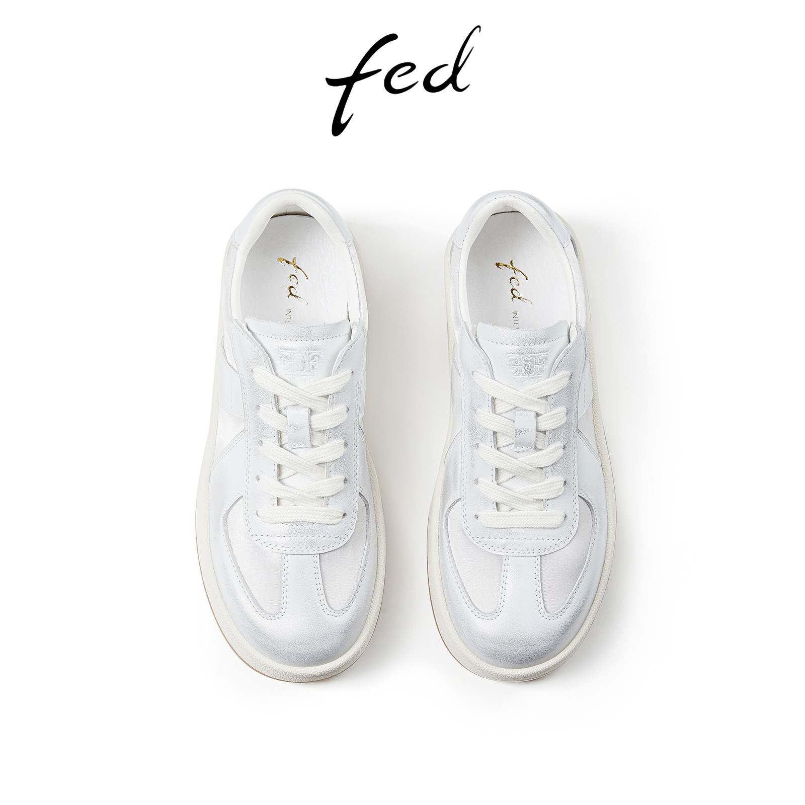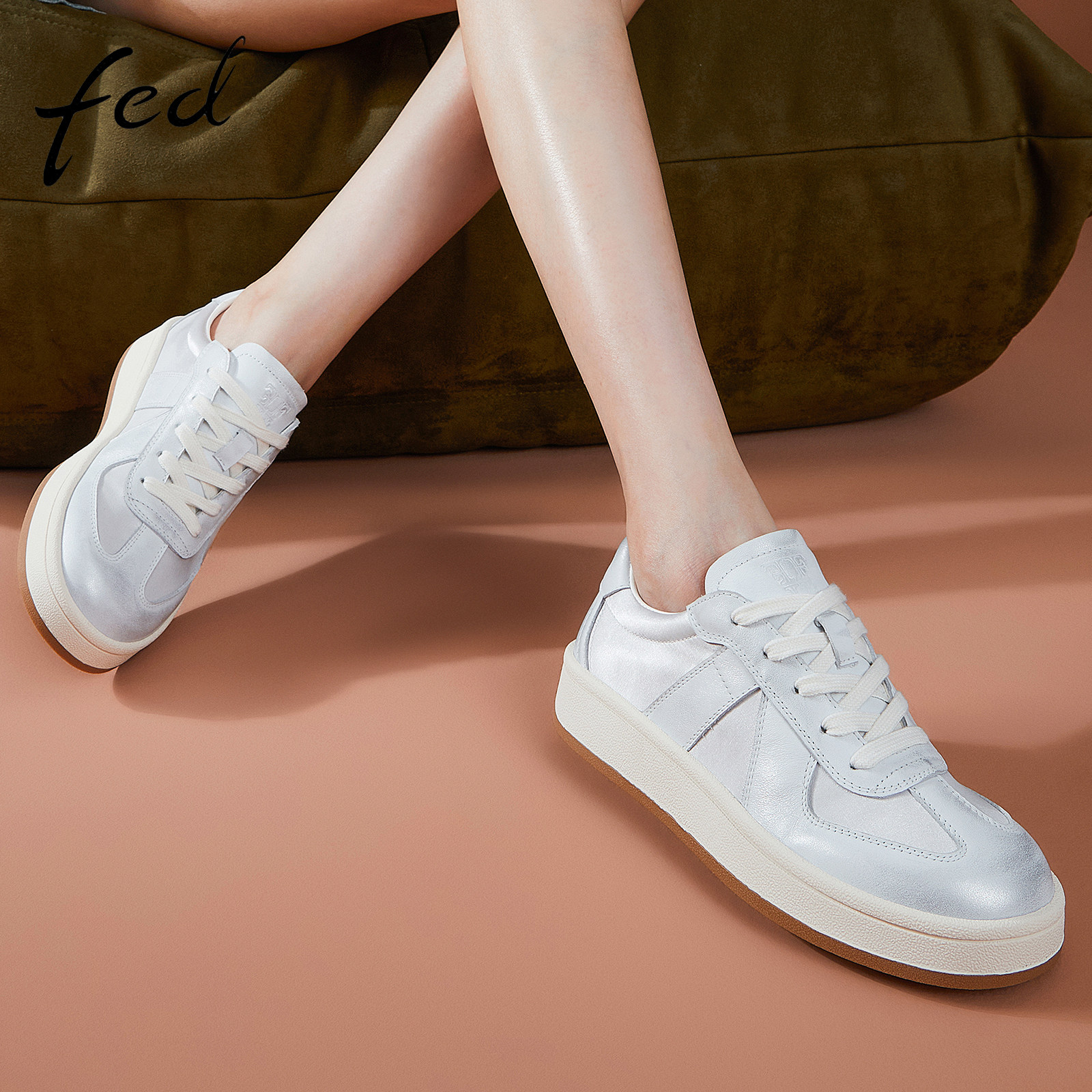 fed轻便板鞋女秋季新款女鞋厚底德训鞋真皮休闲鞋女款D0803-ZC616