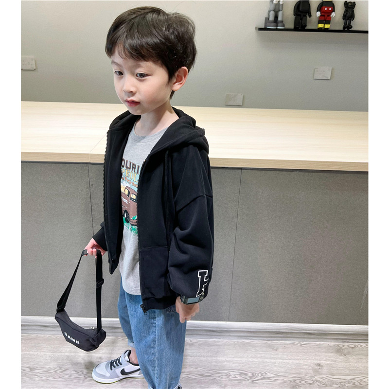 童妈定制男女童日系宽松休闲连帽H毛圈外套儿童拉链外套卫衣秋装