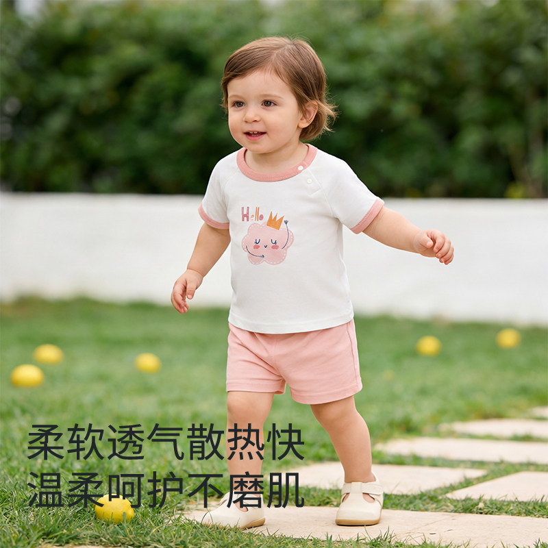 婴儿短袖夏季套装短裤宝宝纯棉薄款婴幼儿分体夏天衣服男女童夏装