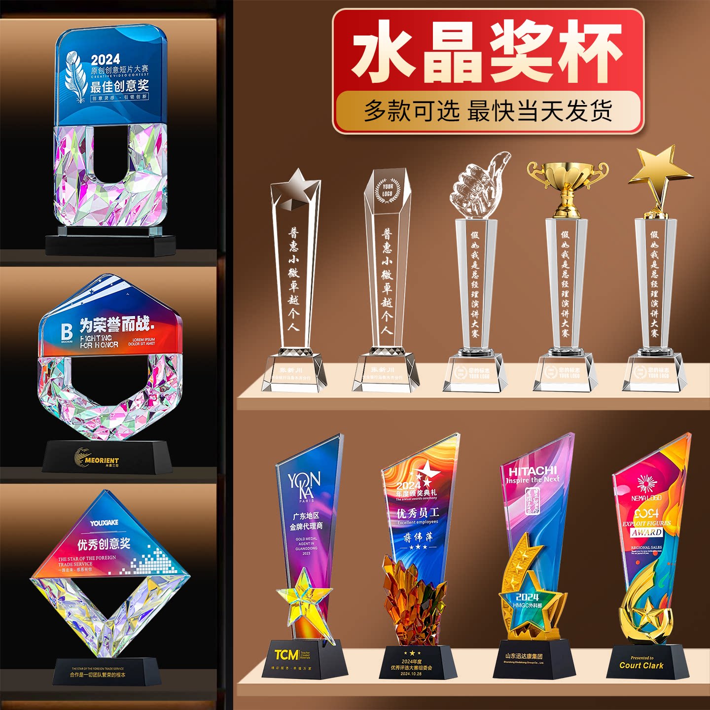 水晶奖杯定制定做创意优秀员工荣誉儿童篮球足球运动订制金属奖牌