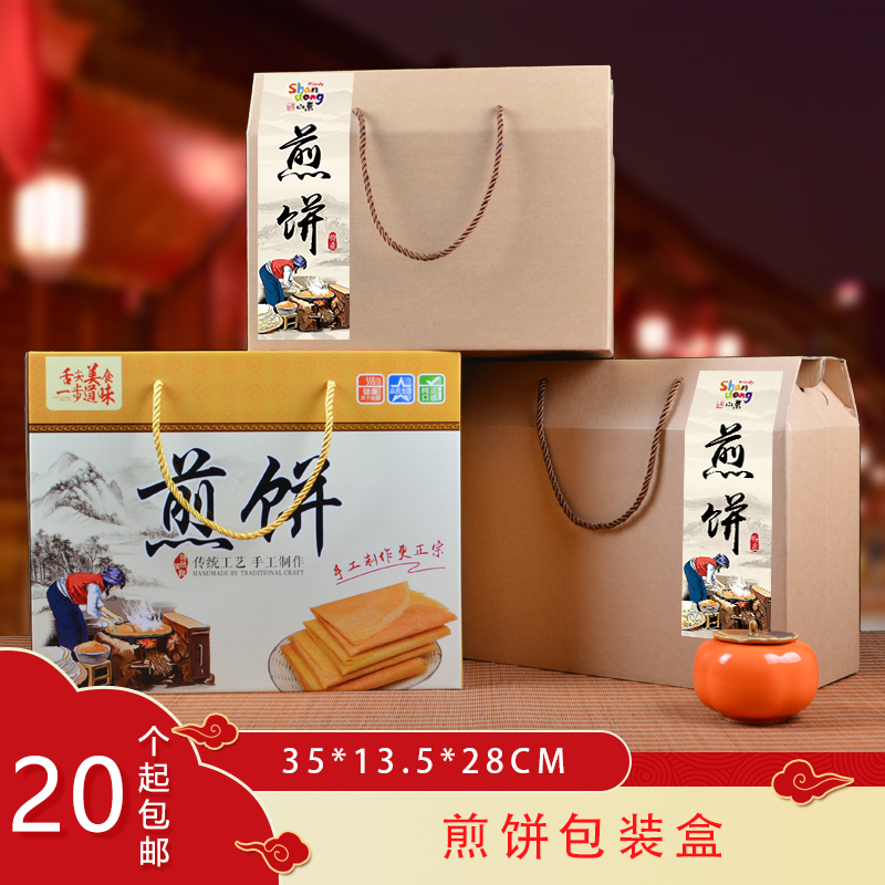 煎饼包装盒礼品盒纯手工煎饼山东杂粮大煎饼手提纸箱子袋批发订制
