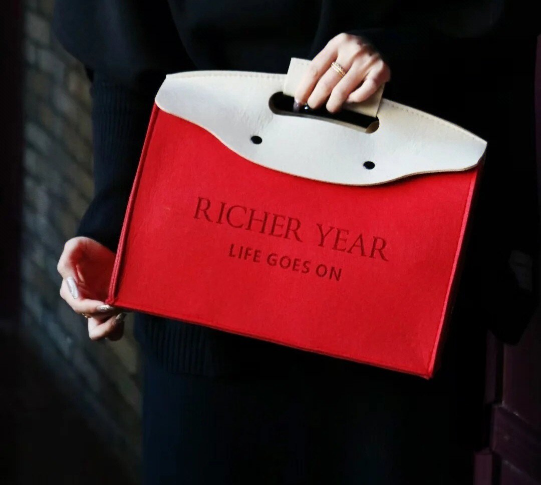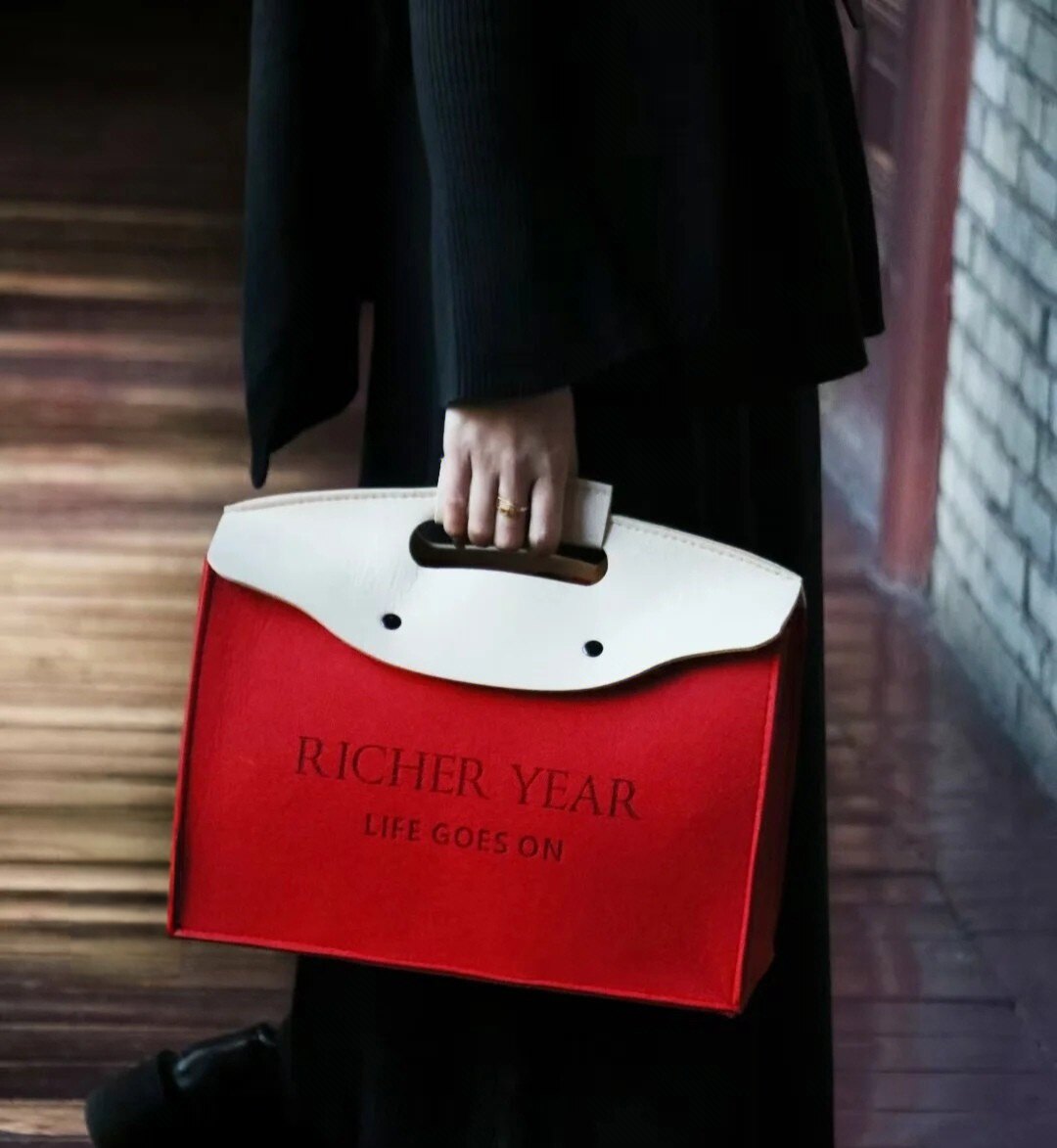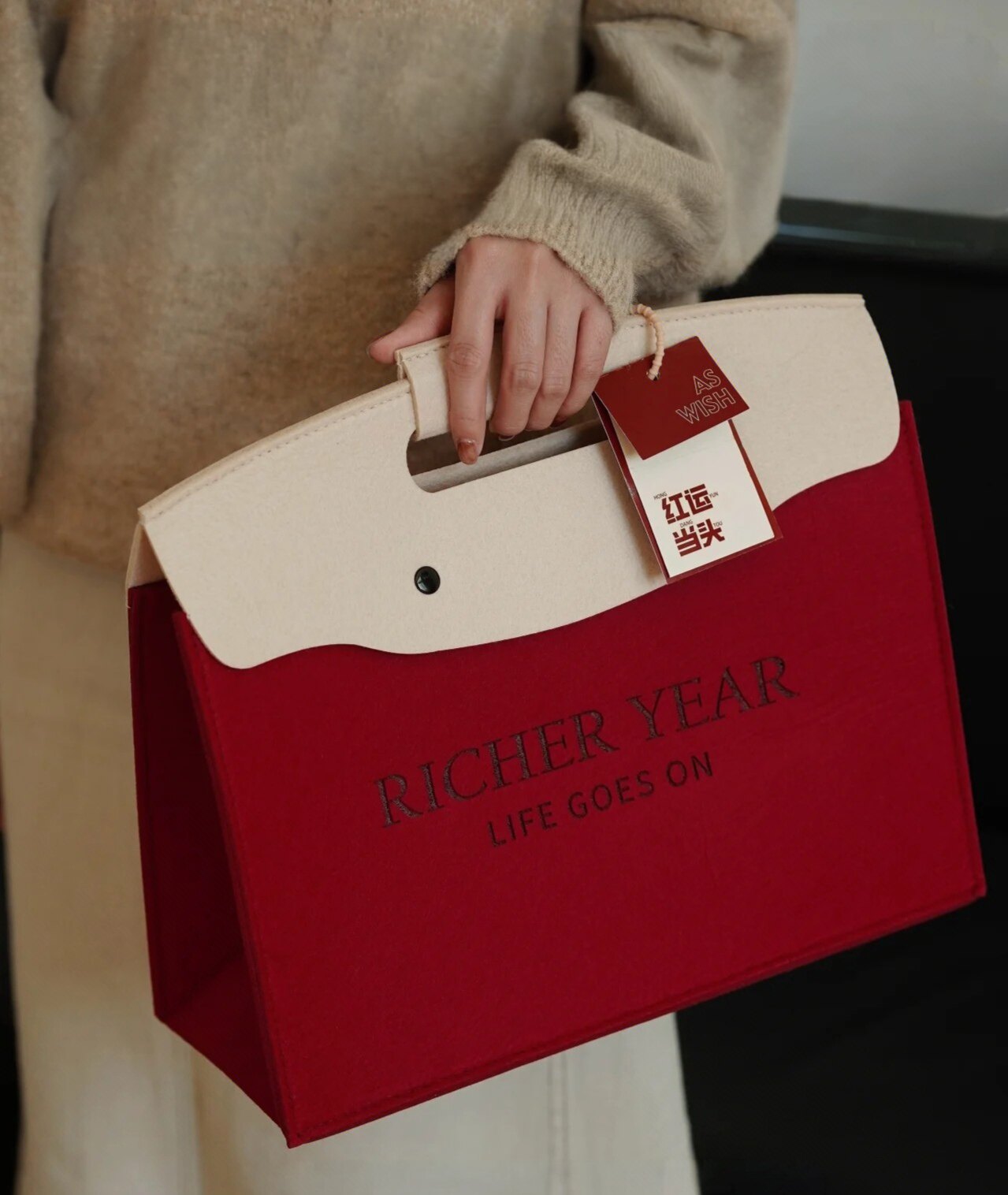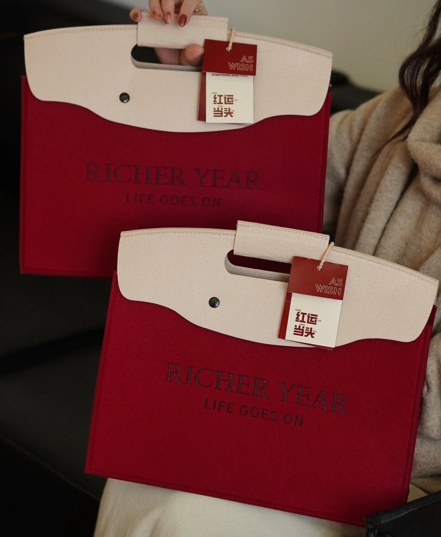 新年毛毡包企业定制logo伴手礼包商务年会周年庆礼品袋礼盒红色包