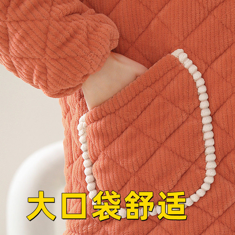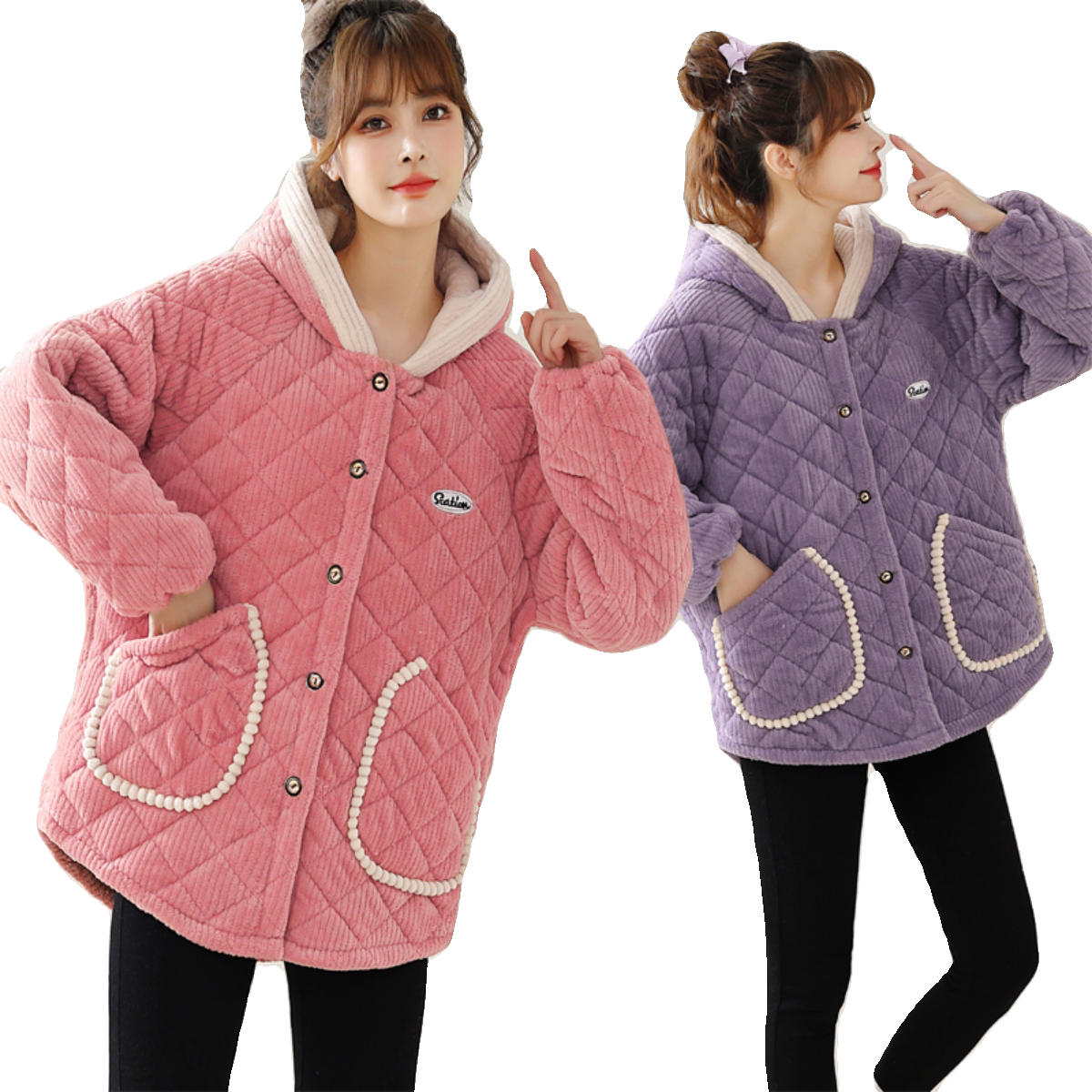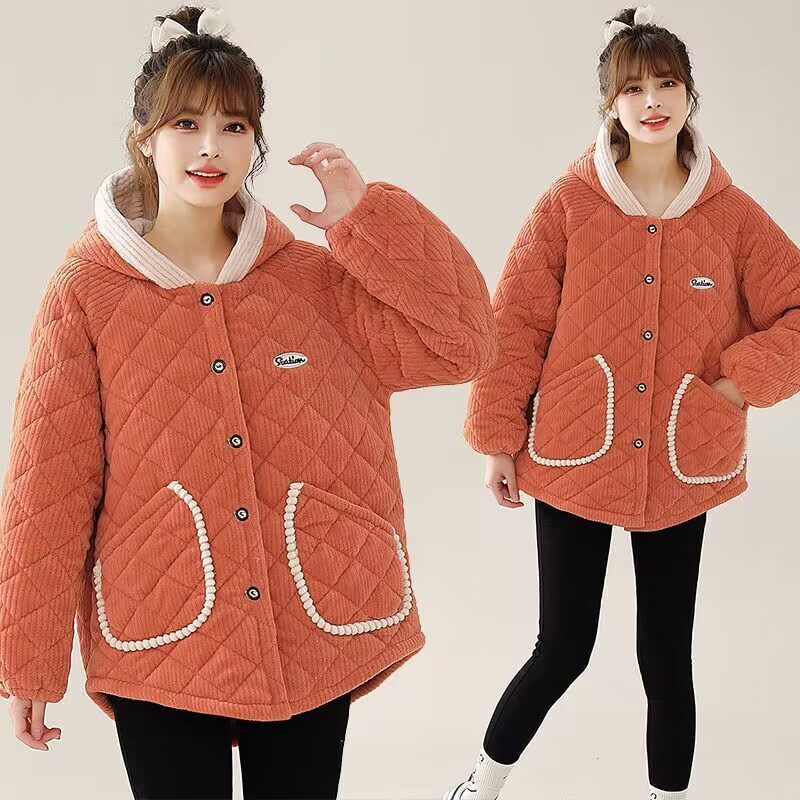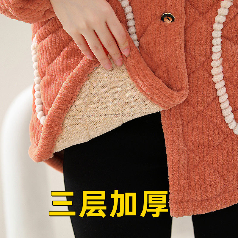 冬季加绒加厚棉衣女装家居服罩衣防寒外套宽松时尚小个子小棉衣女
