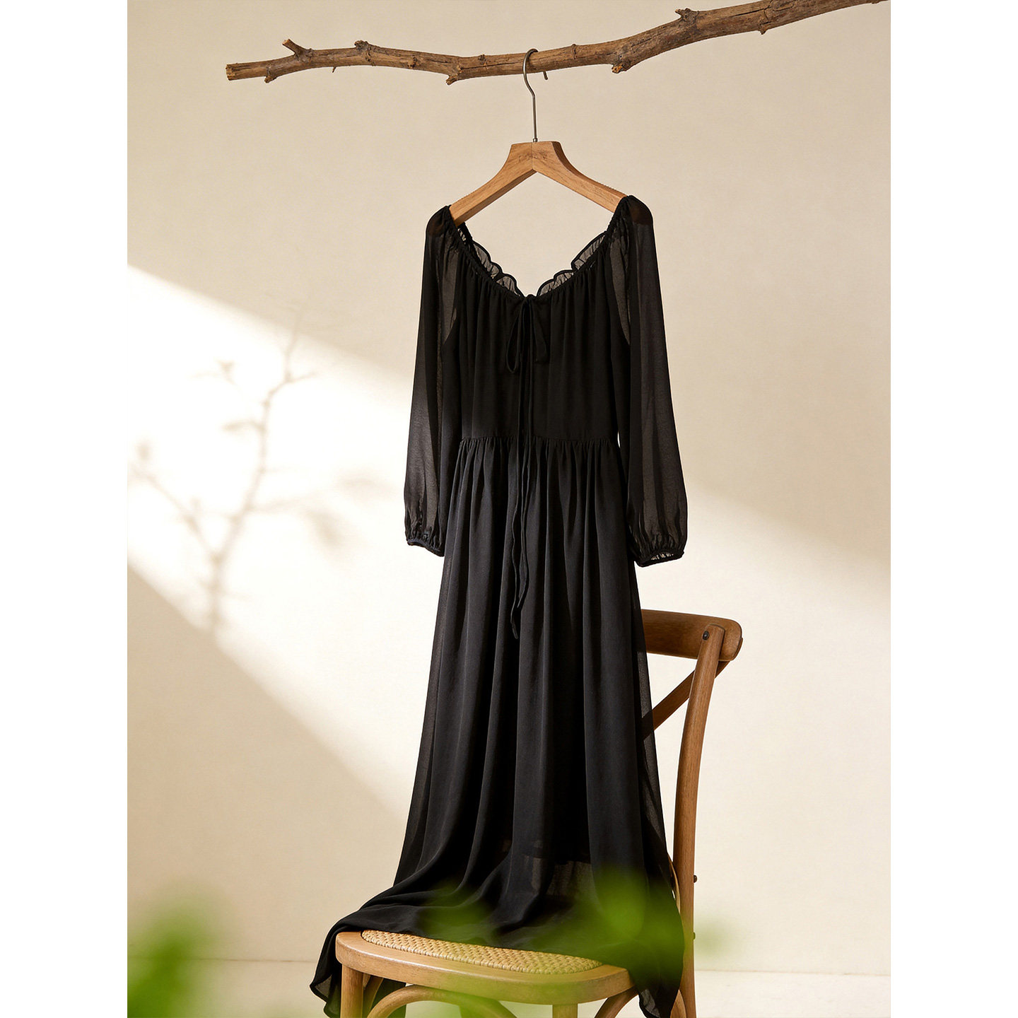 黑色V领连衣裙女2026年春季新款法式赫本风长袖收腰a字高级感裙子
