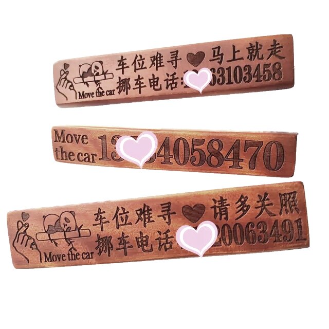 实木临时停车牌定制汽车个性创意挪车电话号码牌木质摆件双面雕刻