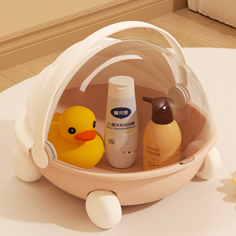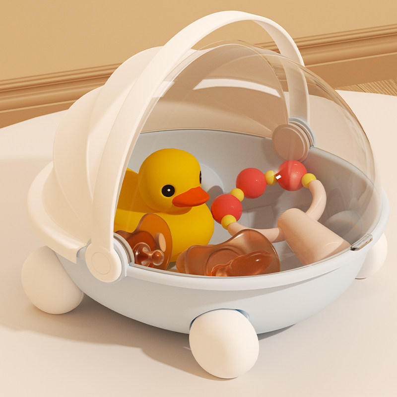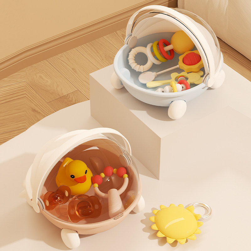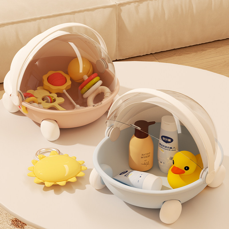 婴儿用品收纳盒桌面创意手提防尘摇铃玩具整理箱带盖牙胶储物盒筐
