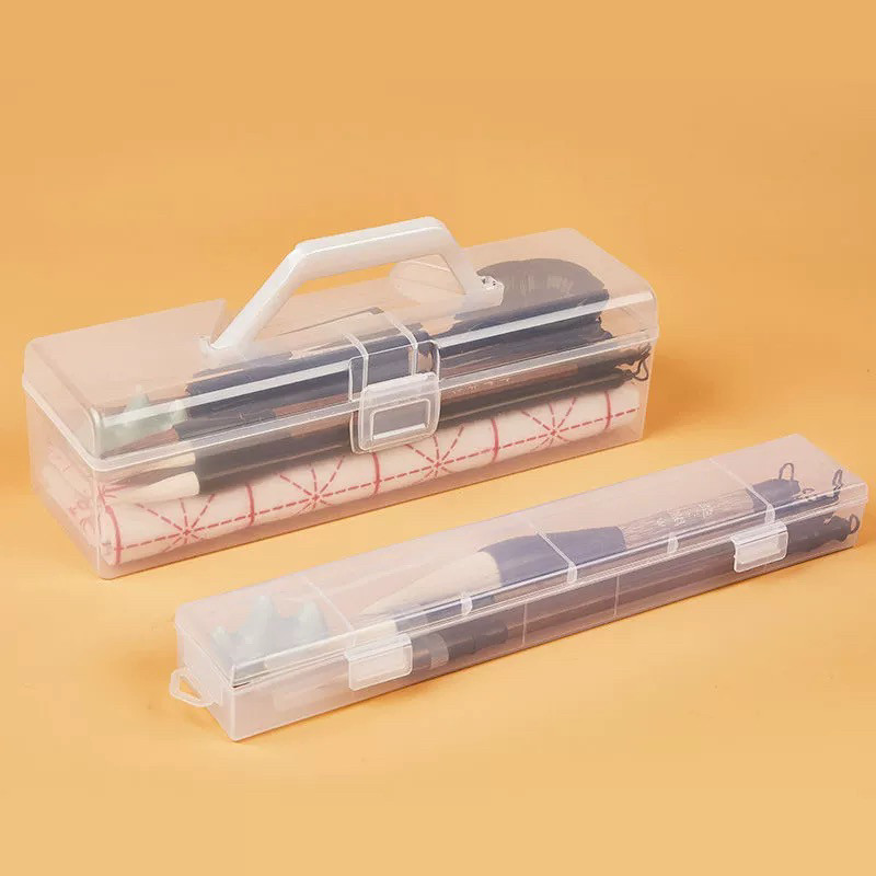 书法工具收纳盒便携手提带盖防尘毛笔盒配件箱美术绘画透明收纳箱