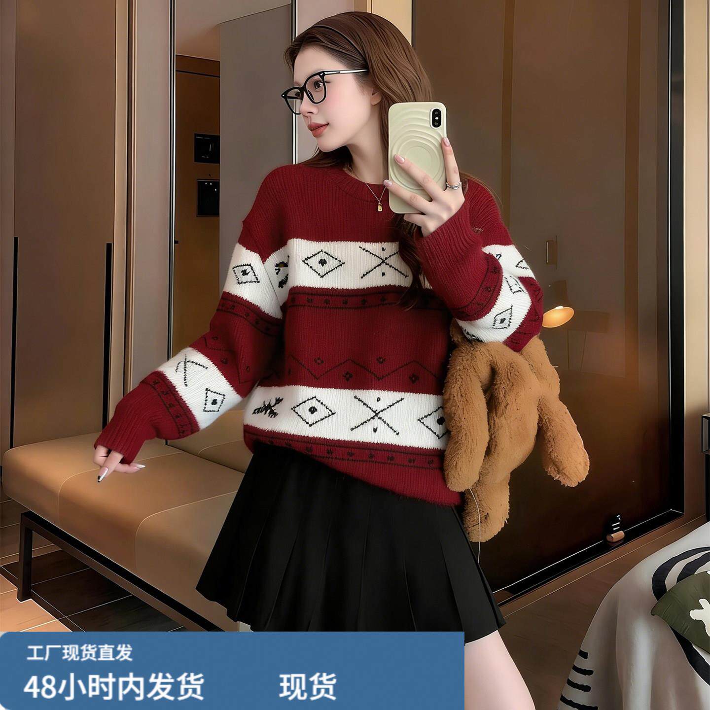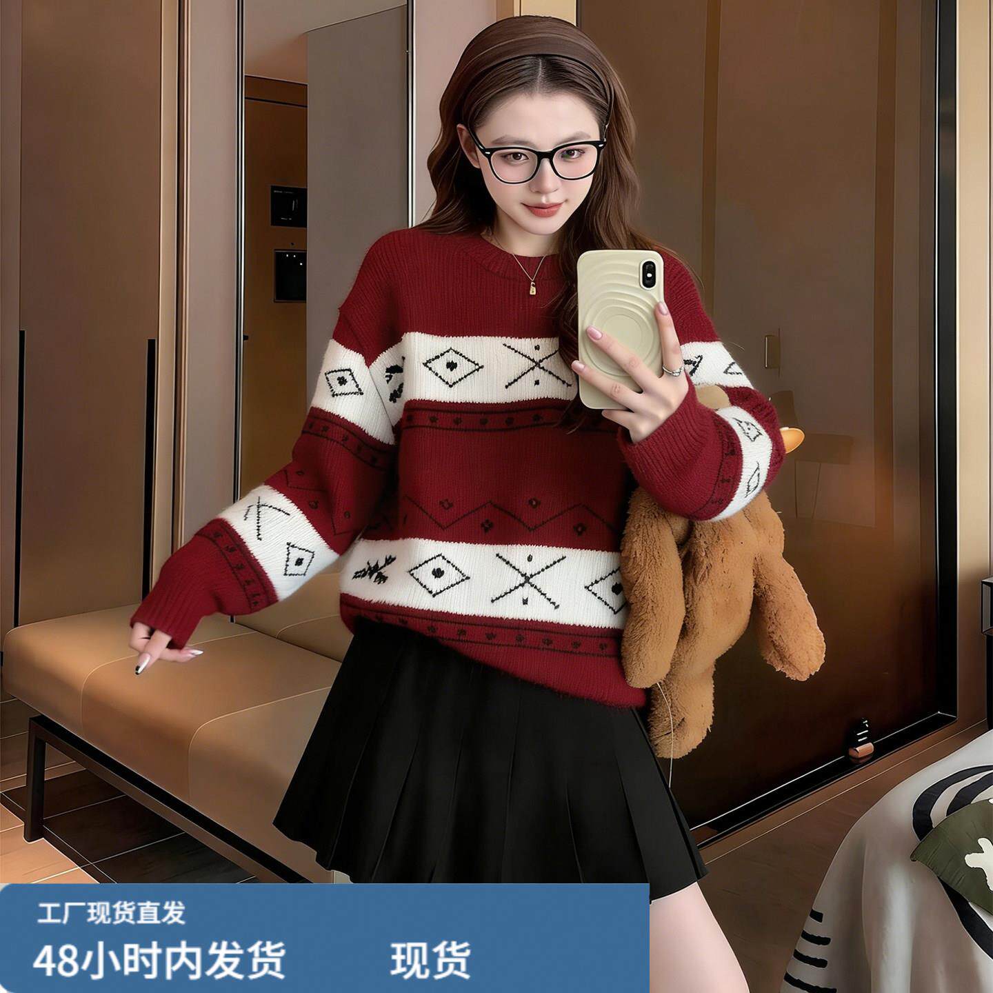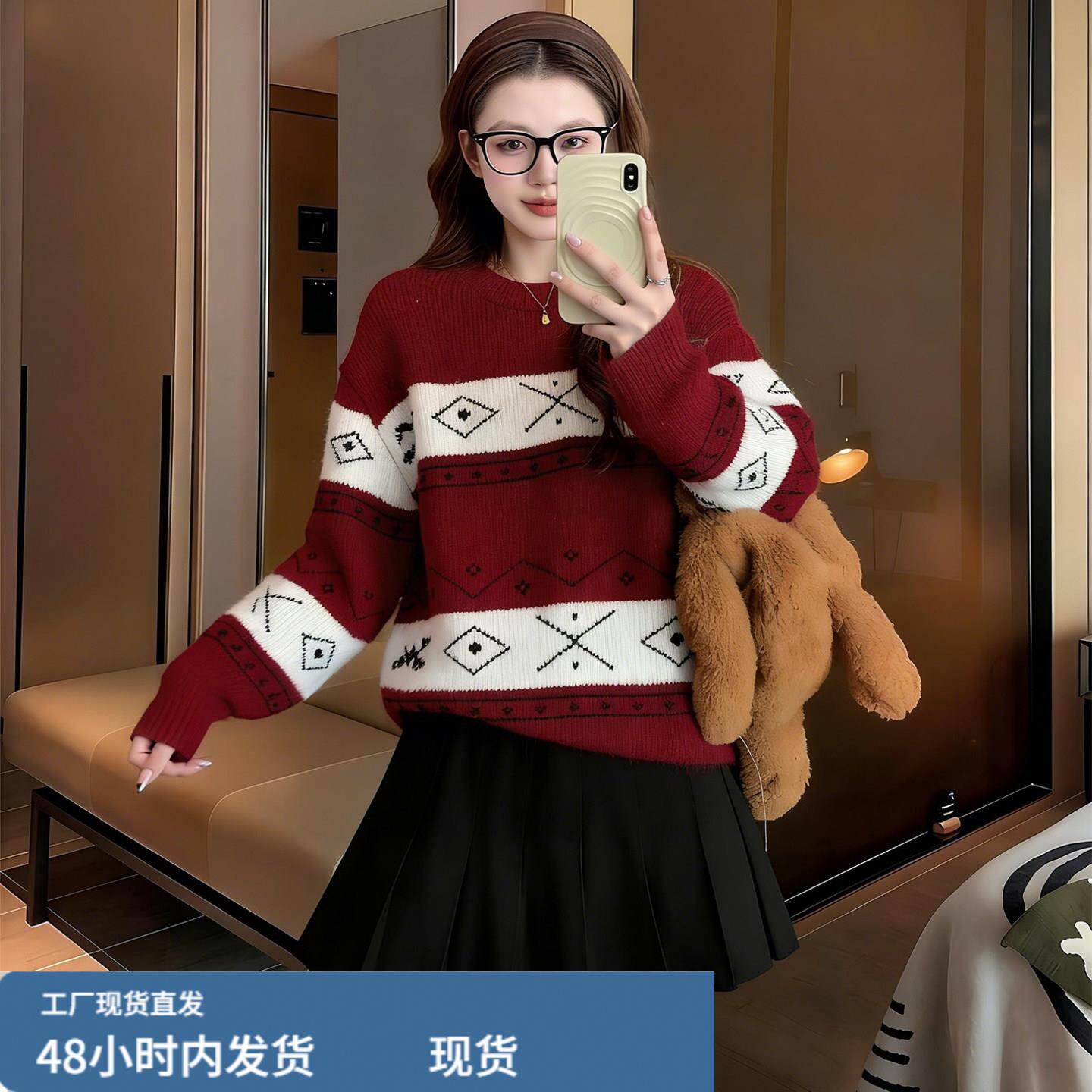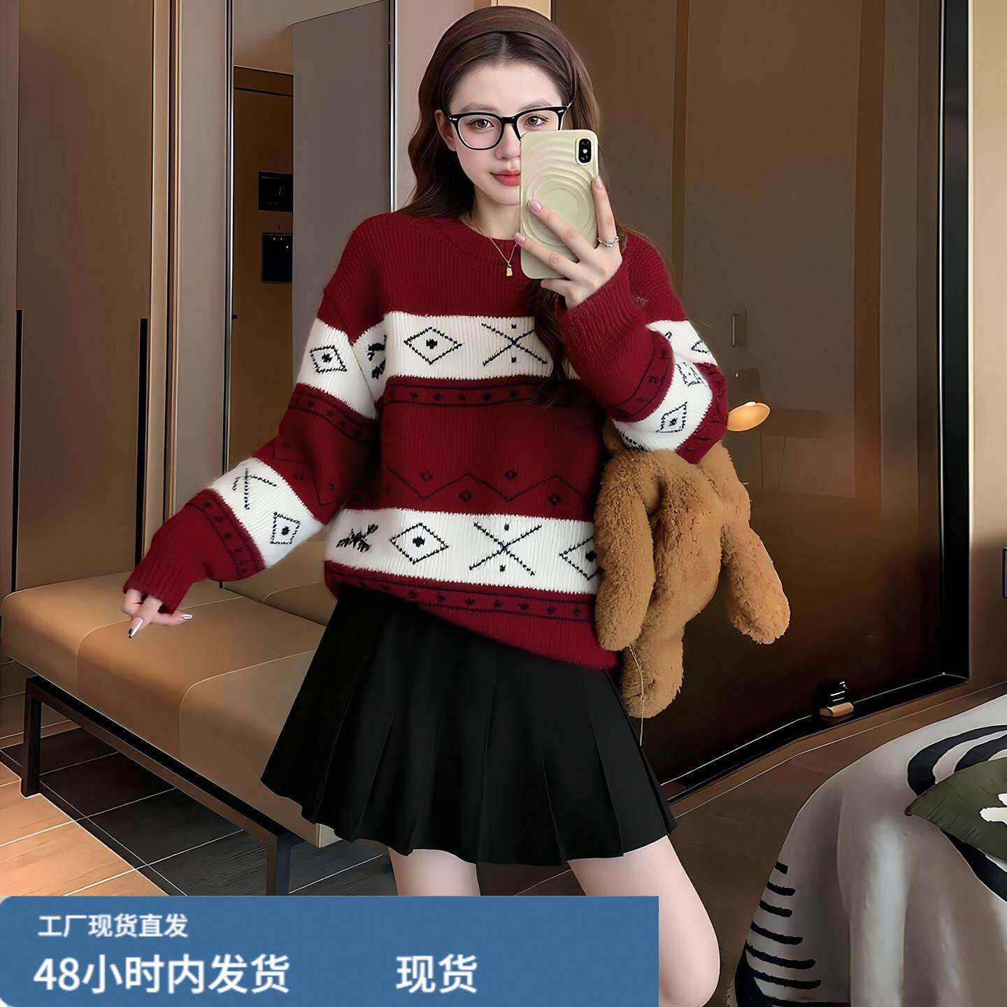 红色毛衣女款2026新款冬季多巴胺跨年过年穿搭新年本命年马年衣服
