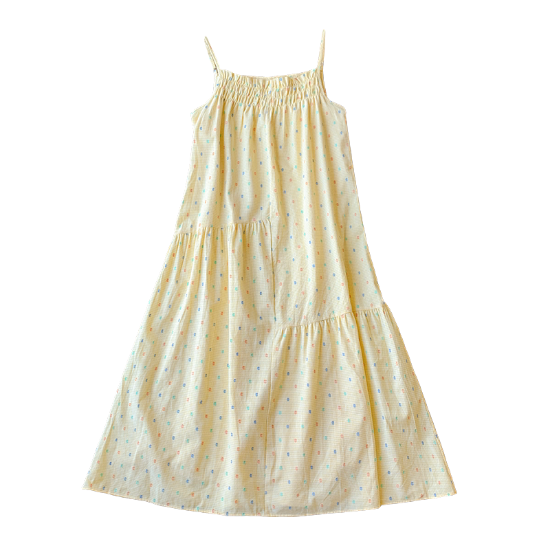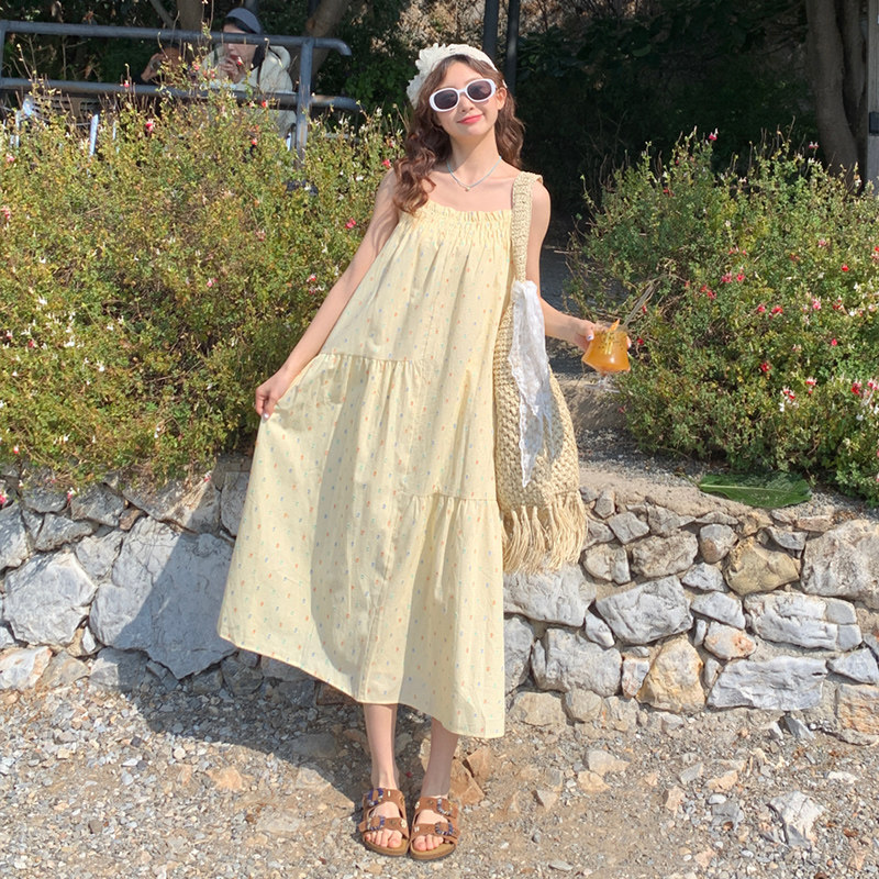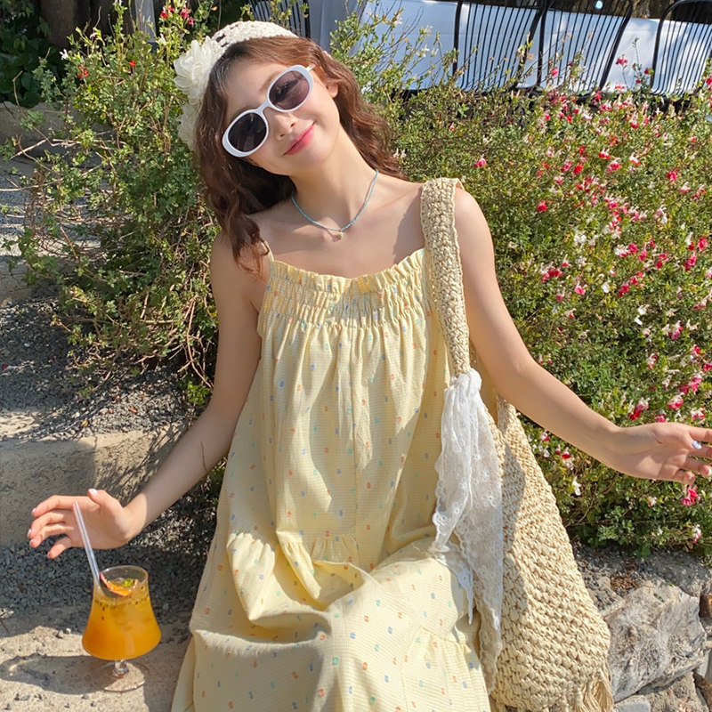 黄色法式波点吊带连衣裙女2026春夏新款今年流行海边度假气质长裙