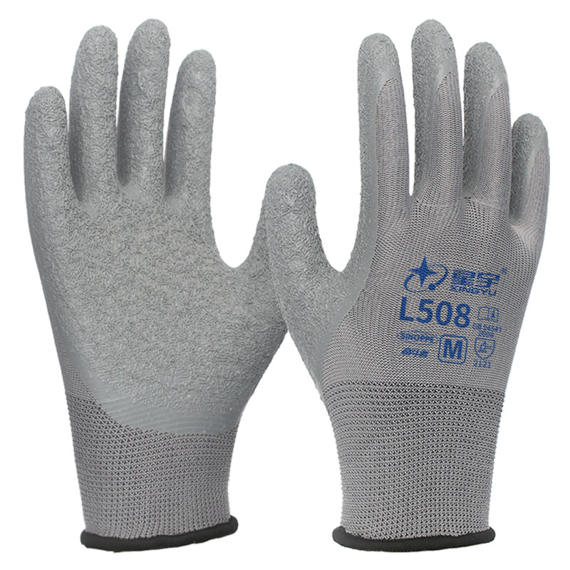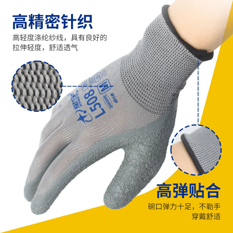星宇L508皱纹防滑劳保手套乳胶耐磨橡胶工地干活工作胶皮浸胶男薄