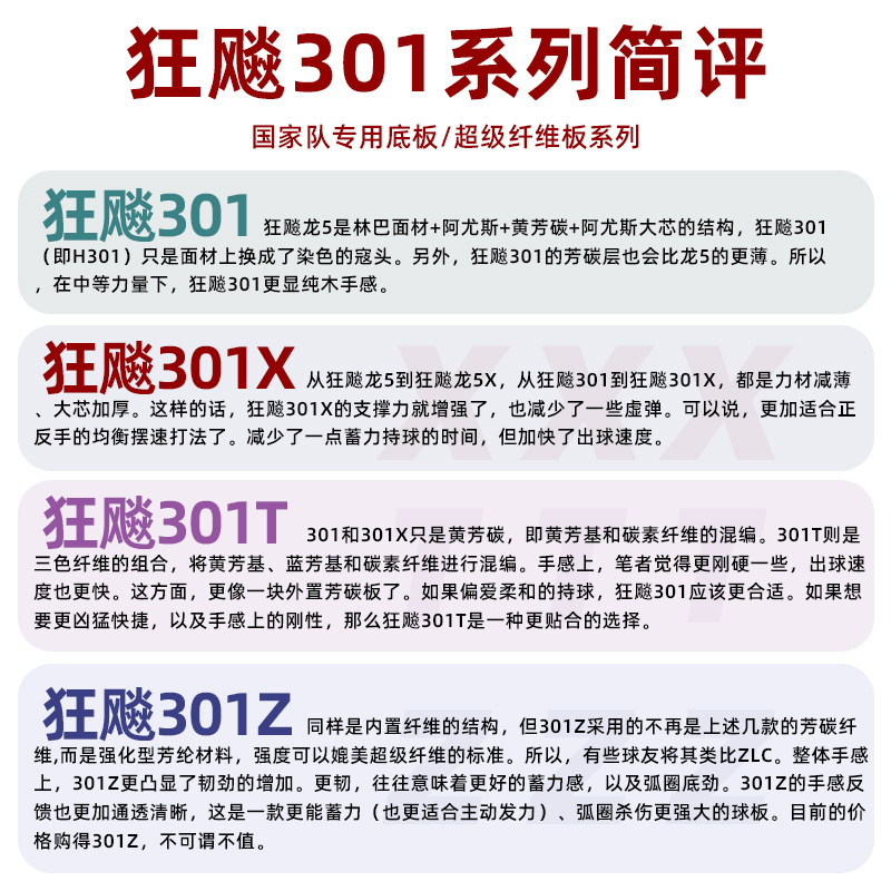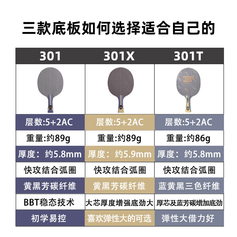 博乒 红双喜狂飙301X乒乓球拍底板 狂飚301T 301Z纤维碳素底板7层