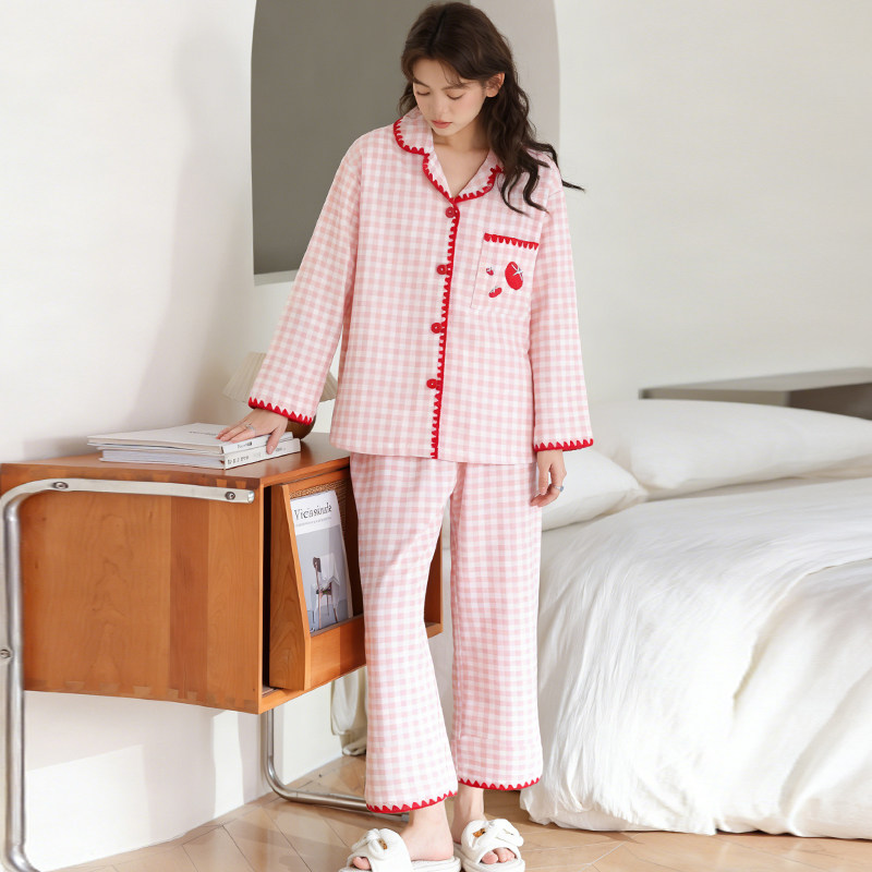 纯棉睡衣春装女款2026年新款高级感长袖开衫番茄家居服女休闲套装