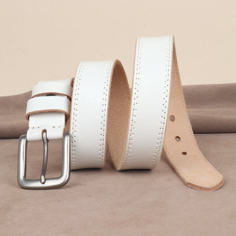 男女通用2025新款白色皮带女真皮宽版配牛仔裤纯头层牛皮男士腰带