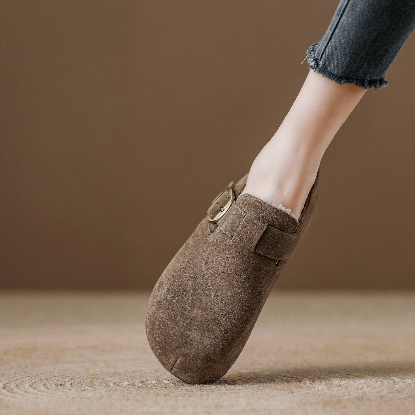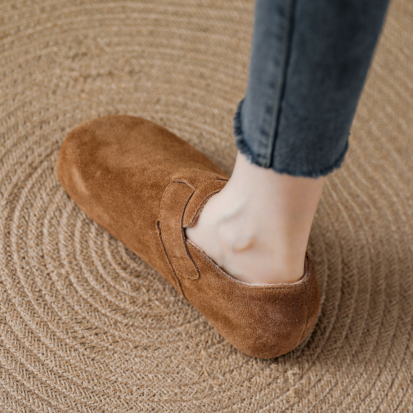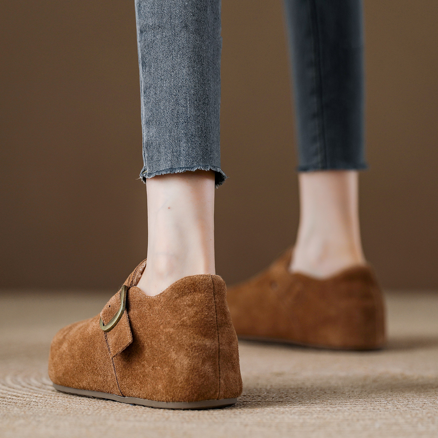 厚底内增高真皮勃肯鞋女2025秋季新款一脚蹬软底防滑休闲乐福单鞋