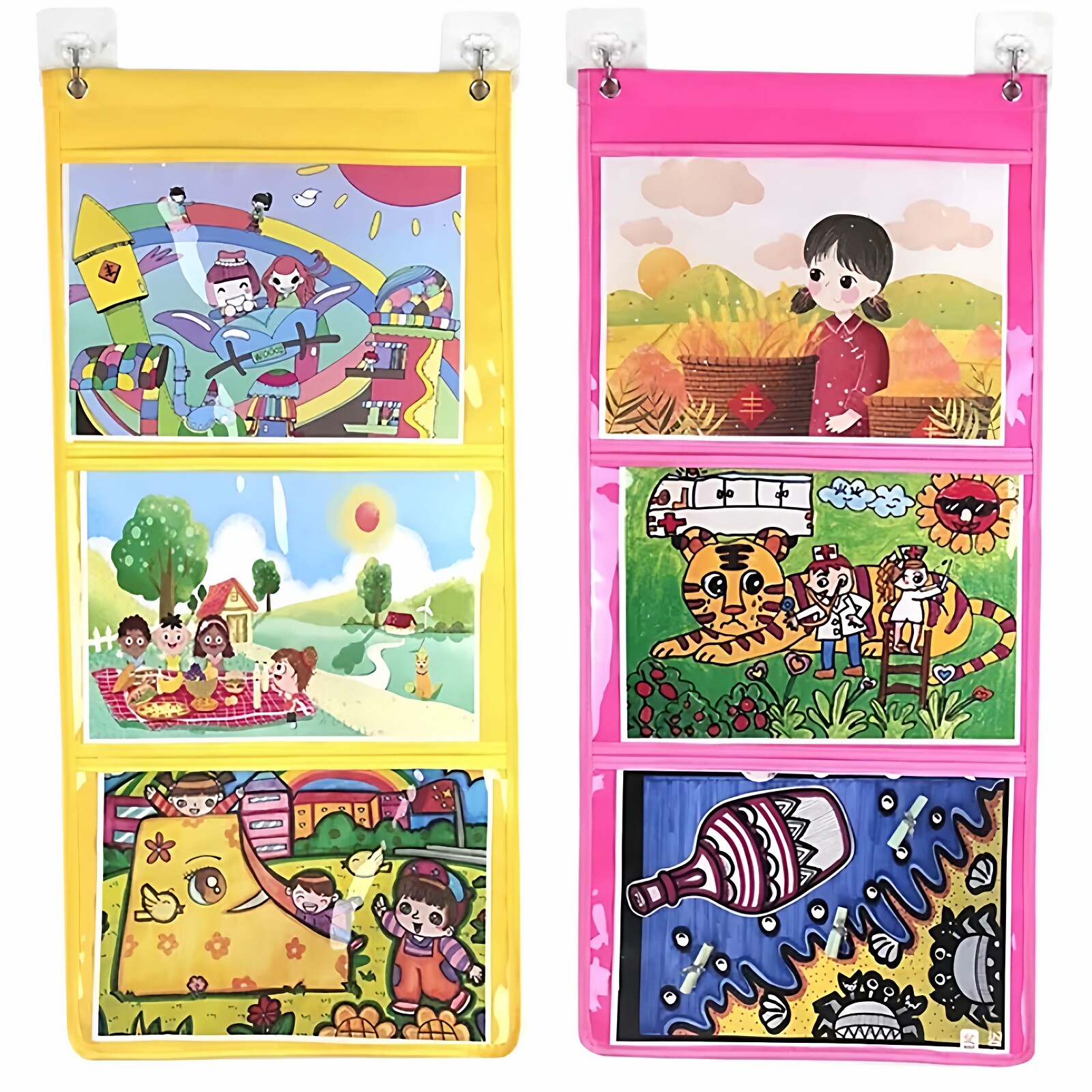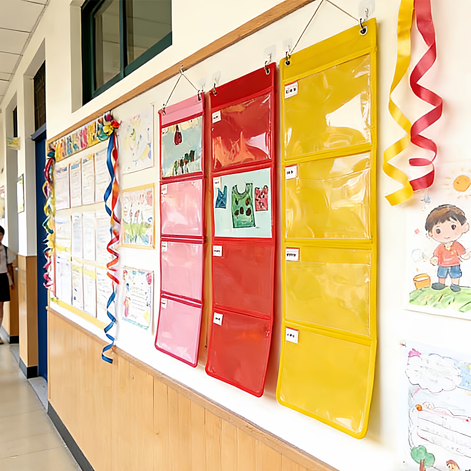 幼儿园作品展示挂袋绘画美术作品收纳A4/A3透明挂袋墙挂式收纳袋