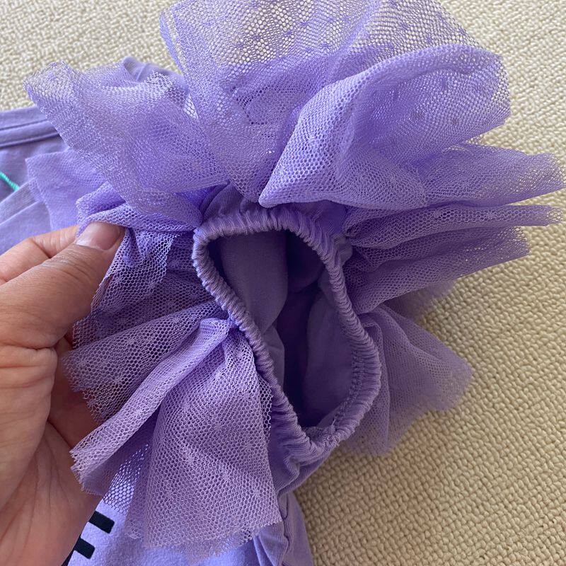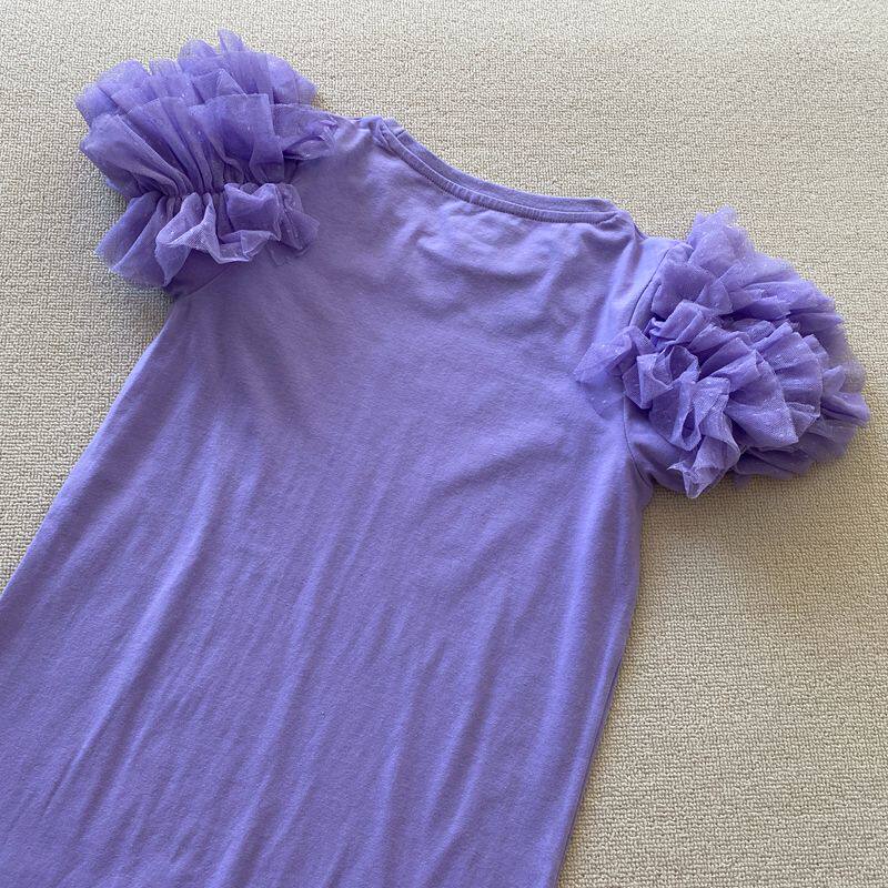 7-12岁 外贸夏季女童儿童柔软轻薄拼纱袖短袖连衣裙