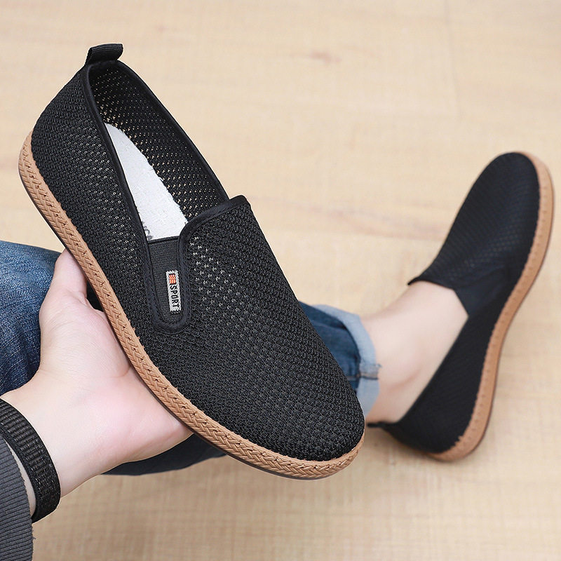夏季艾草男布鞋网面软底透气防滑休闲开车专用一脚蹬网布鞋镂空