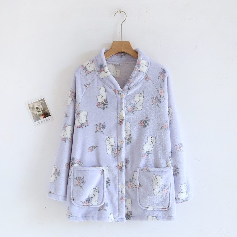 单件上衣女士睡衣冬季女款秋冬款法兰绒绒加厚款珊瑚绒家居服冬天