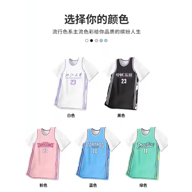 假两件篮球服套装定制学生校运会班服T恤女生短袖篮球衣团购印字