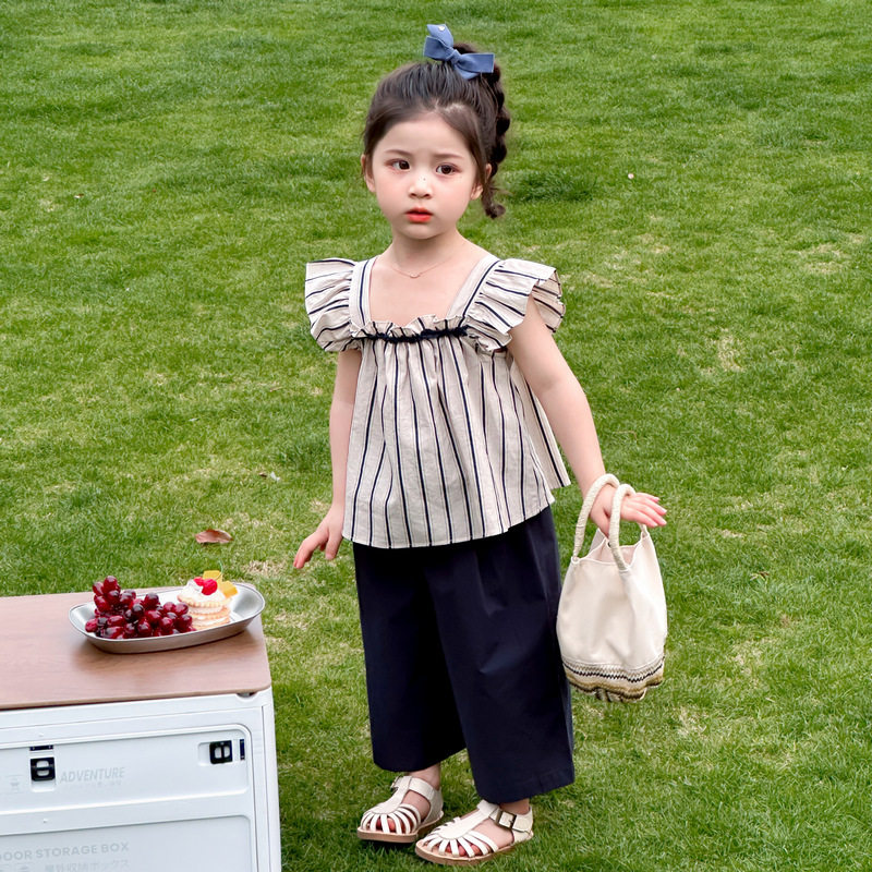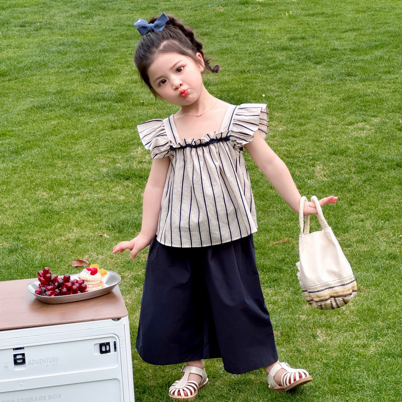 超好看韩系女童夏季飞袖套装2025新款洋气时髦上衣高级感穿搭套装