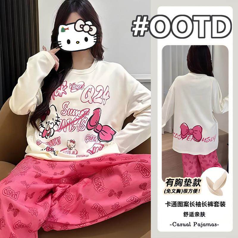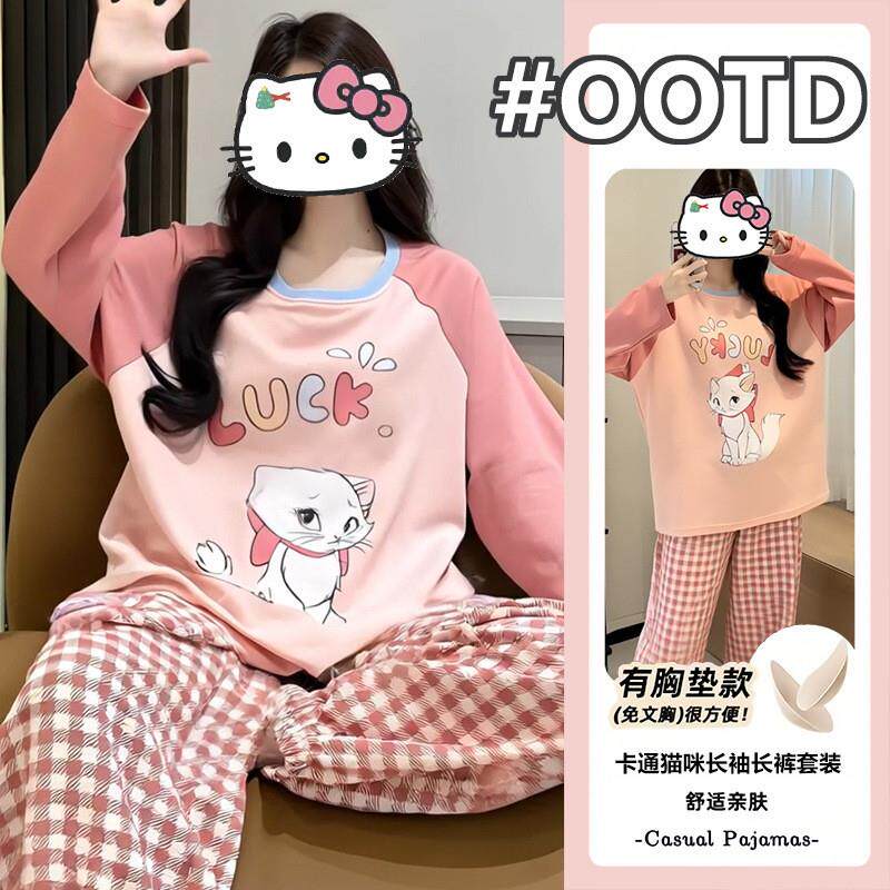 免穿文胸睡衣女款带胸垫春秋季长袖2026年新款春秋纯棉家居服套装