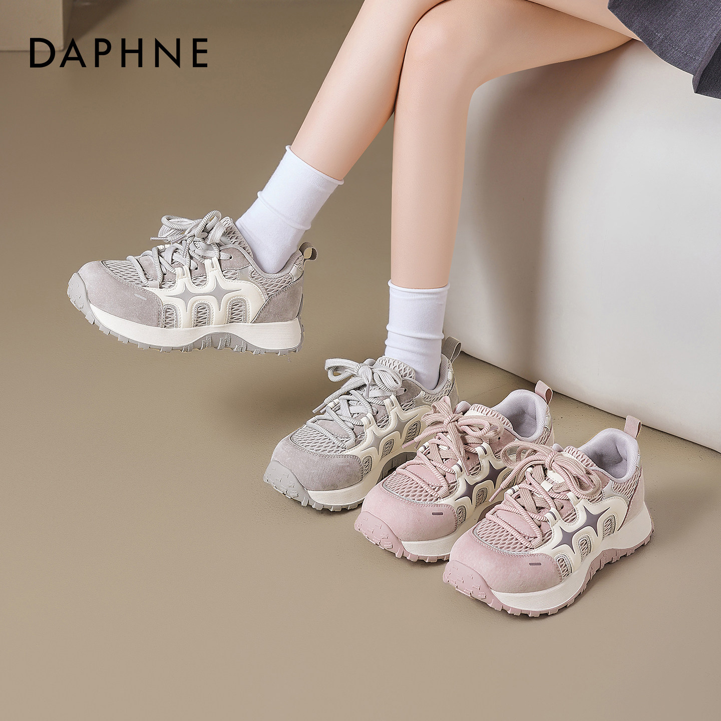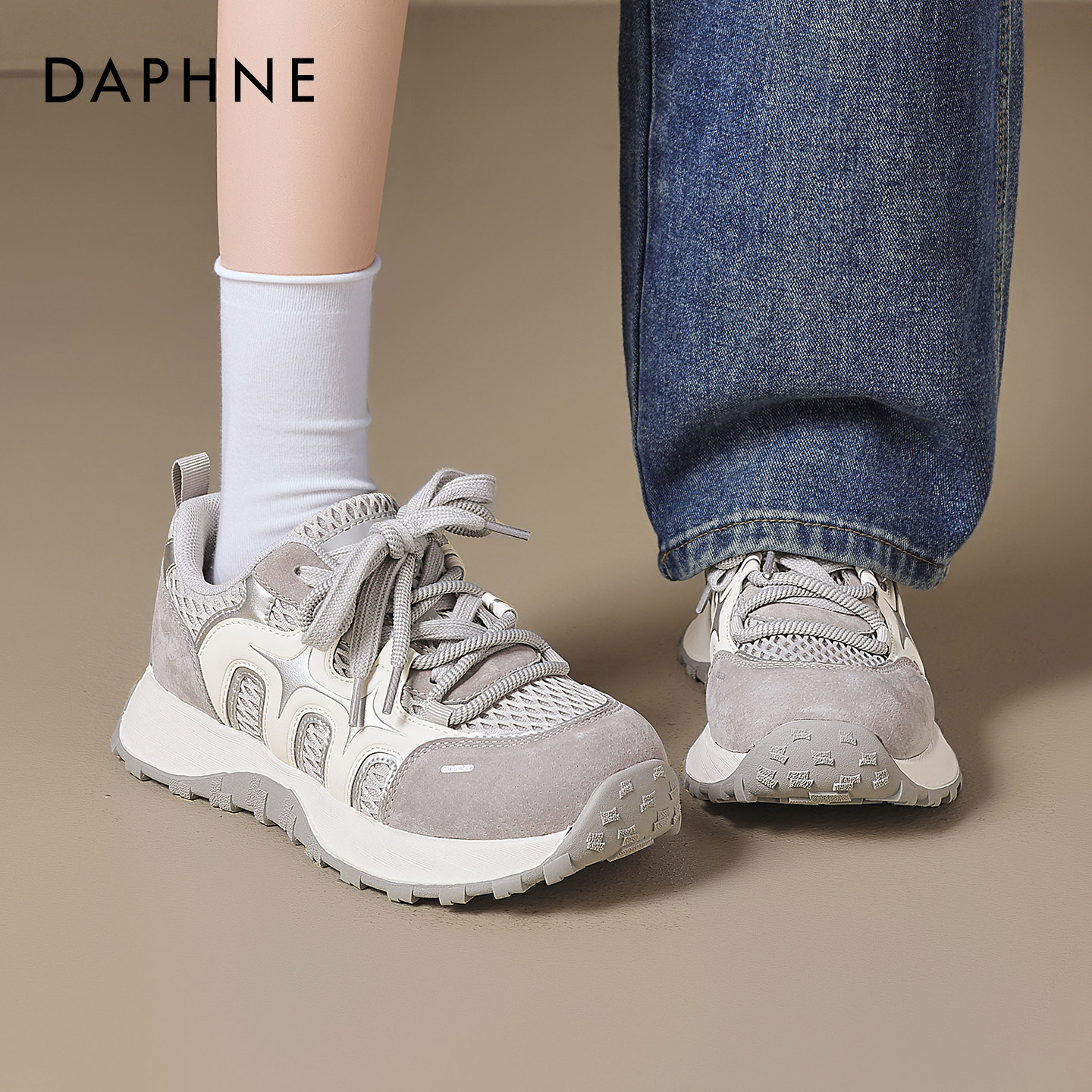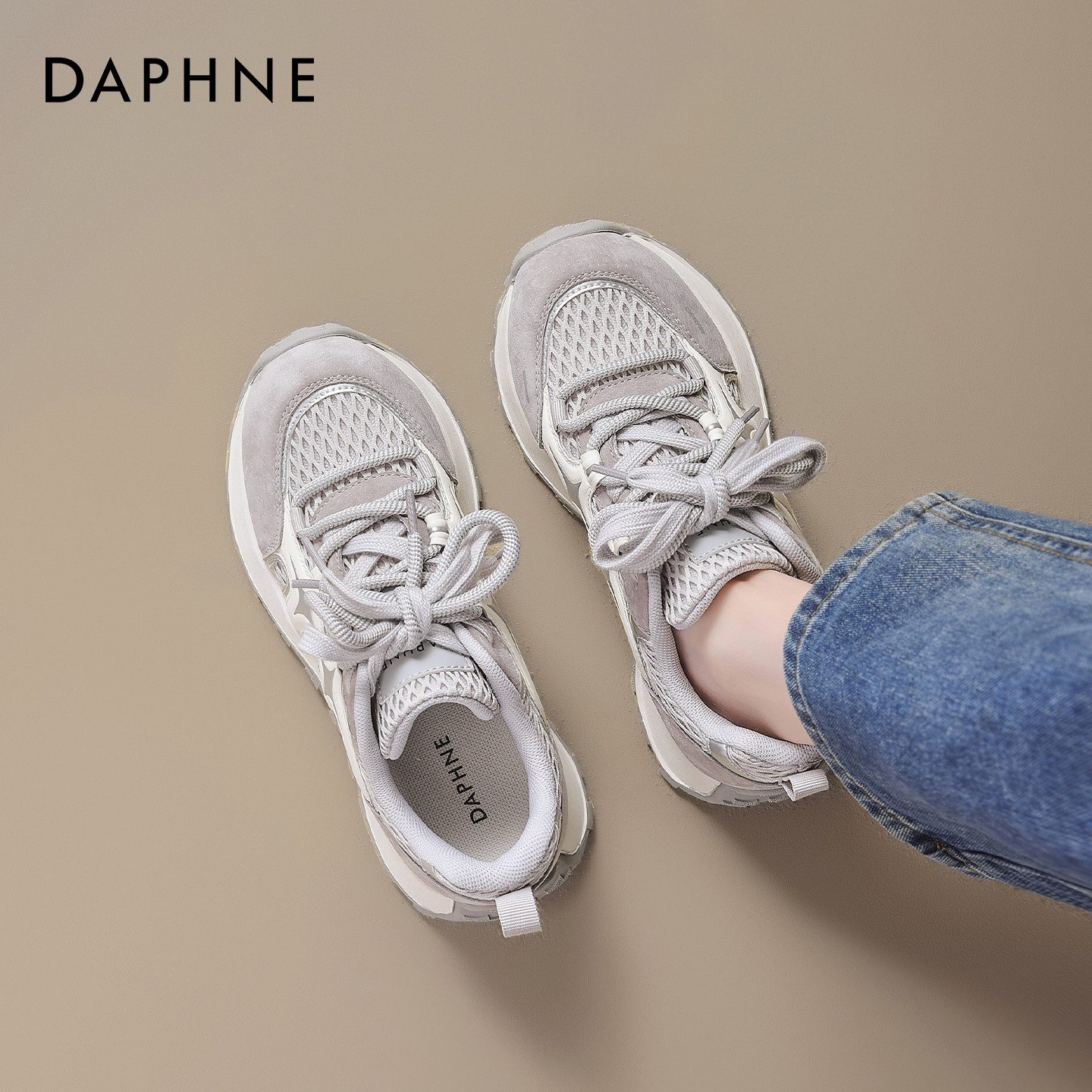 达芙妮厚底老爹鞋女2026春夏新款网面透气增高休闲运动鞋软底女鞋
