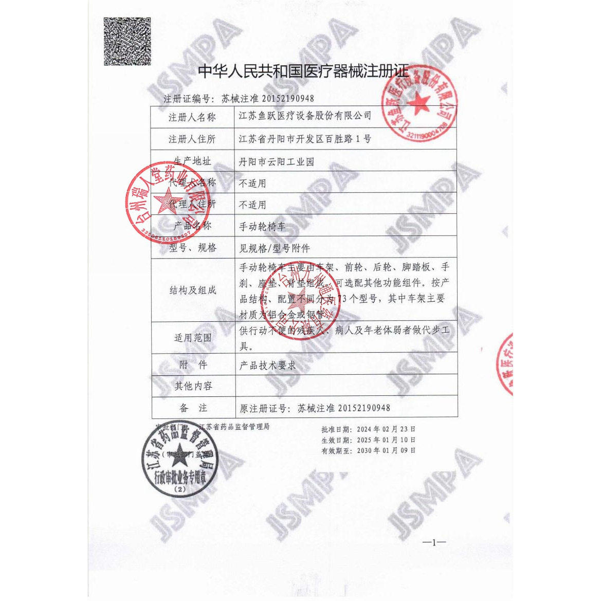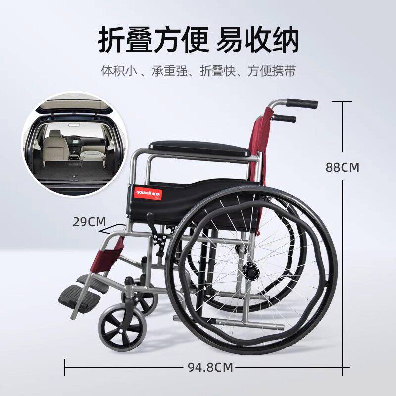 鱼跃手动轮椅车H007 老人残疾人代步车工具折叠便携家用轻便配件