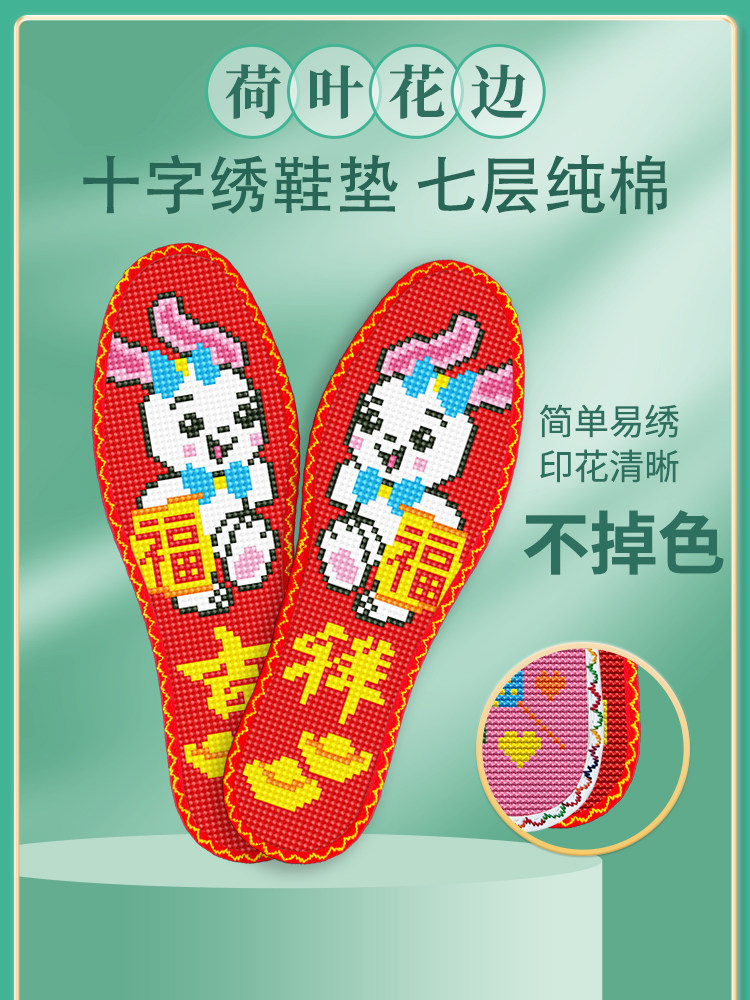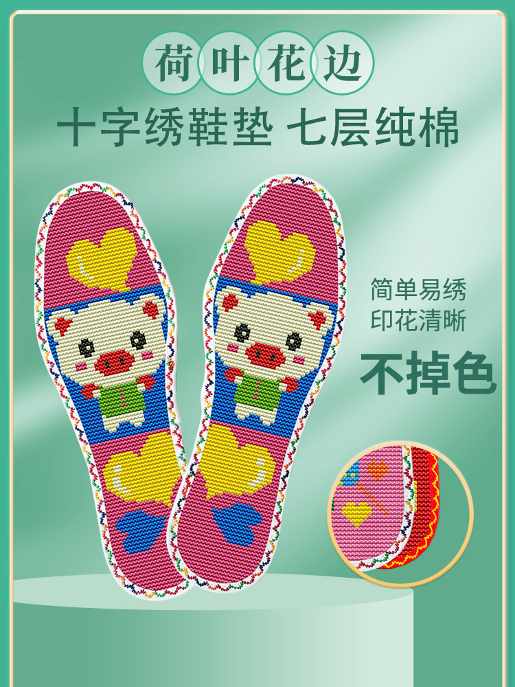 新款荷叶花边十字绣鞋垫半成品手工刺绣七层纯棉情侣卡通吸汗透气