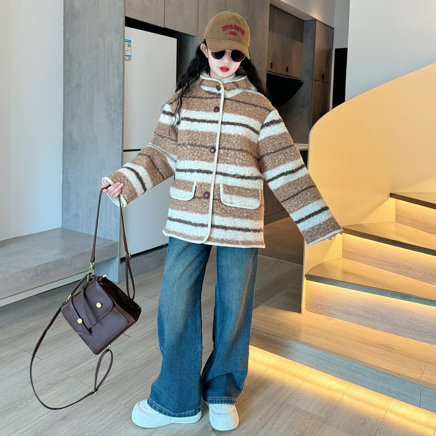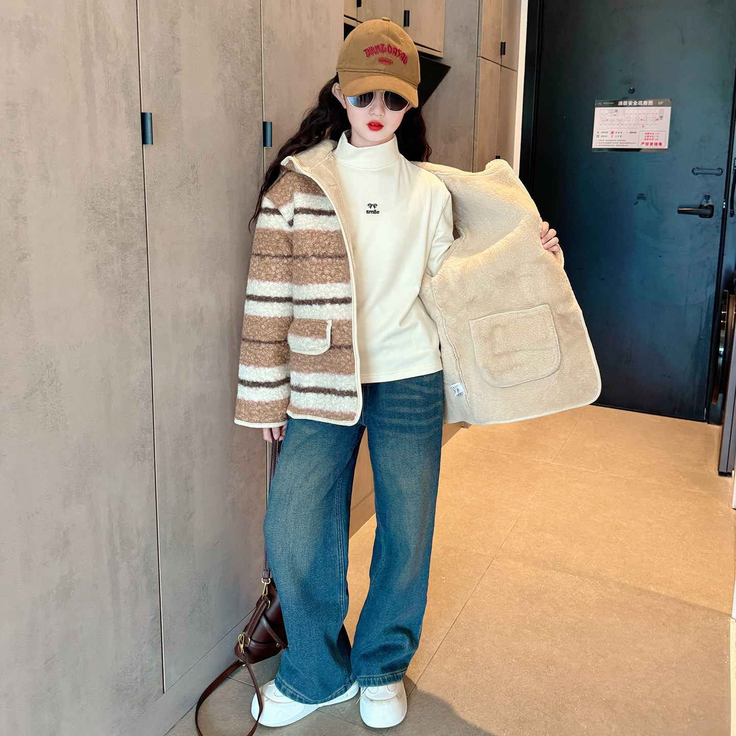 女童加绒外套秋冬装2025新款儿童超好看毛毛衣女大童冬季加厚上衣