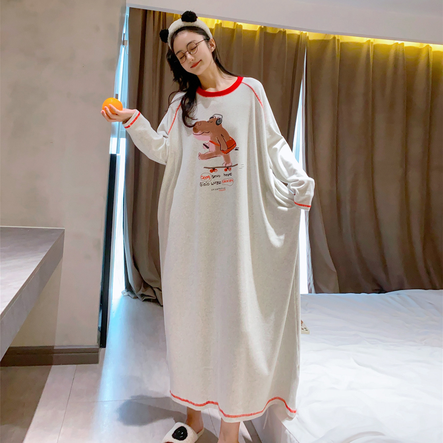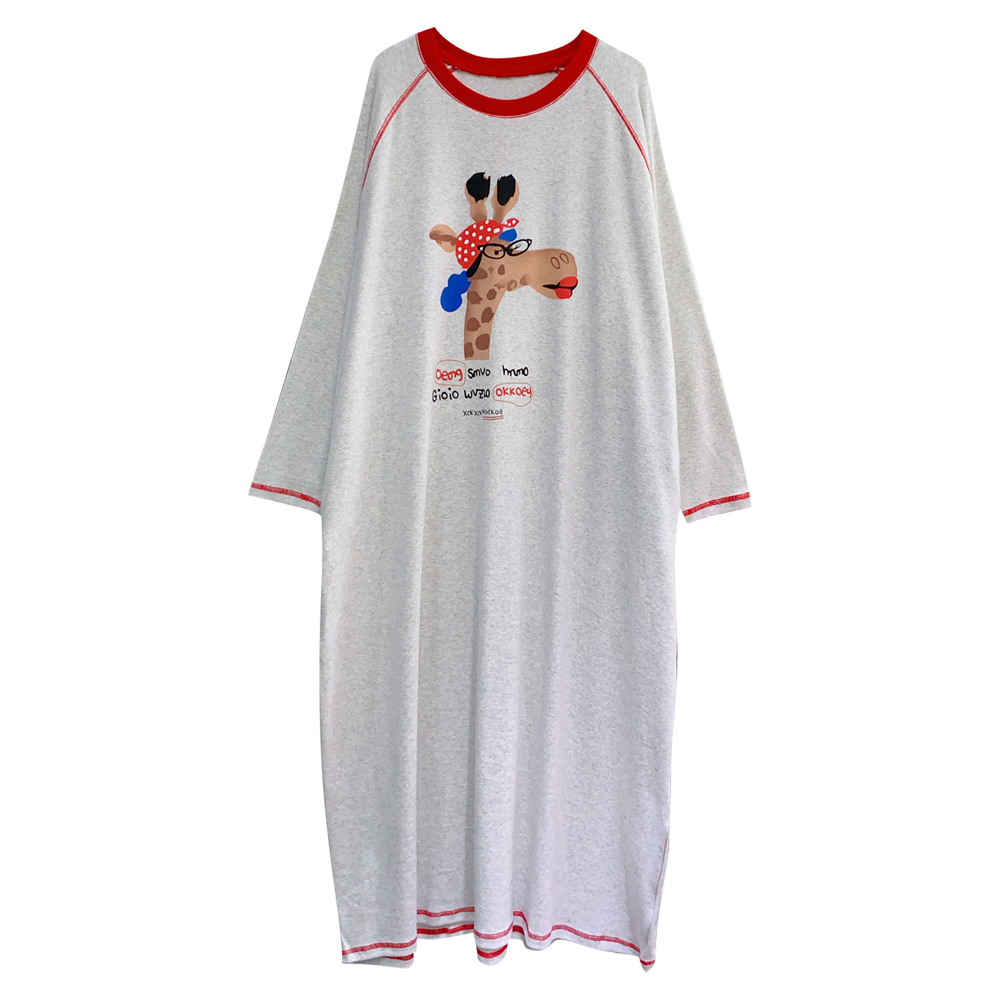 加长睡裙长袖纯棉秋冬加厚大码胖MM睡衣女韩版长颈鹿孕妇睡裙及踝