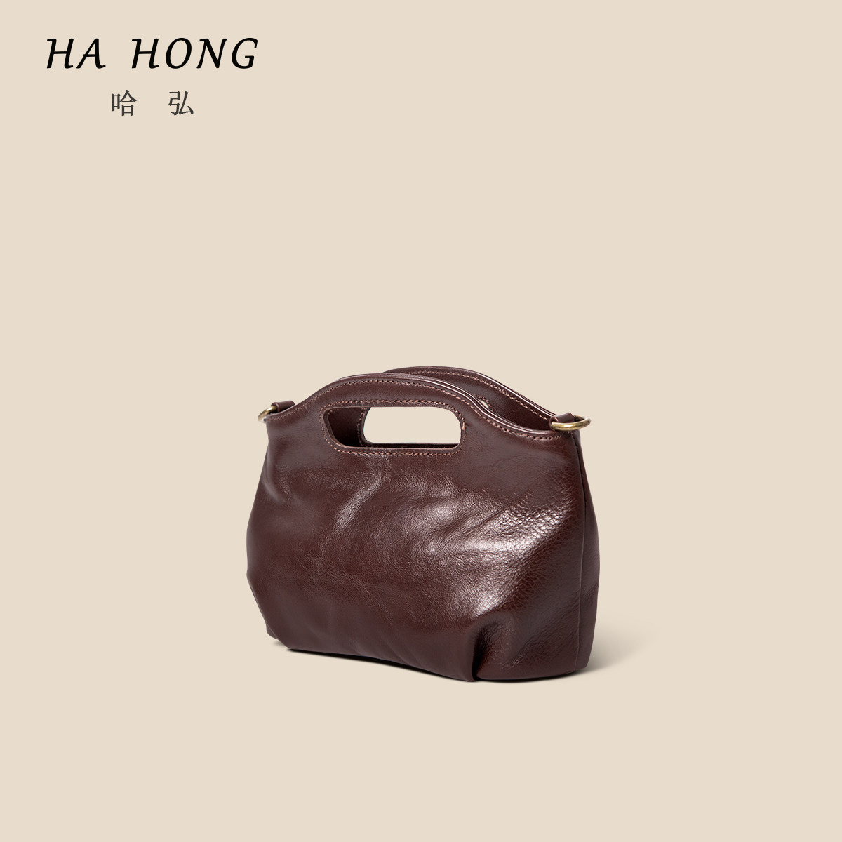 哈弘新款真皮云朵包植鞣头层牛皮高级感单肩斜挎小包包手提小方包