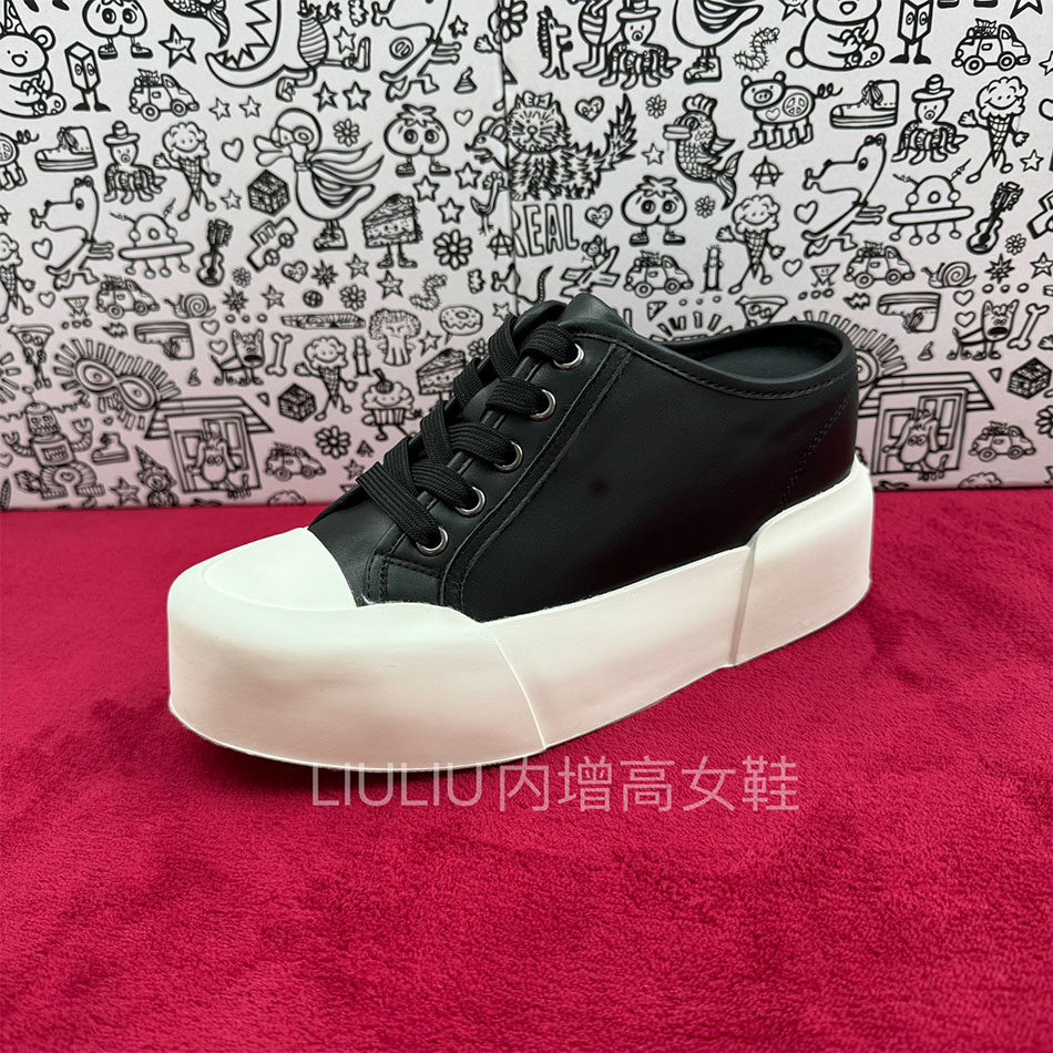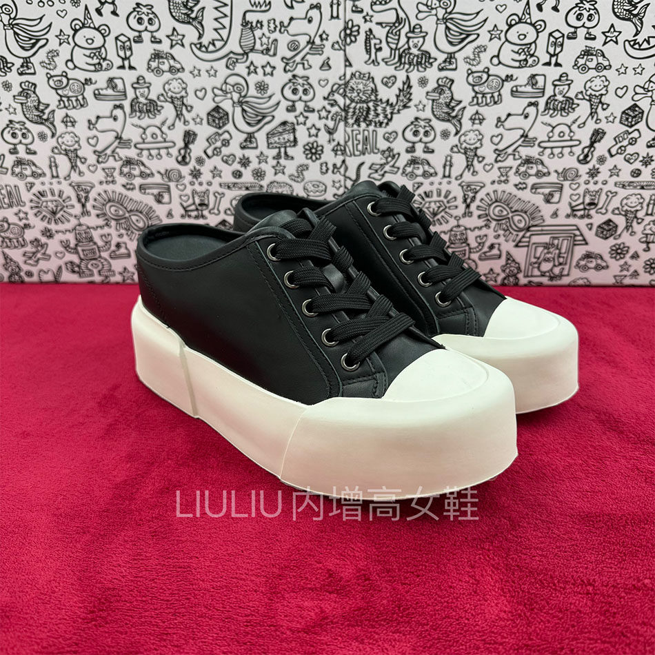 2024春夏新厚底隐形内增高8CM一脚蹬休闲包头黑色拖鞋女YF698ABR