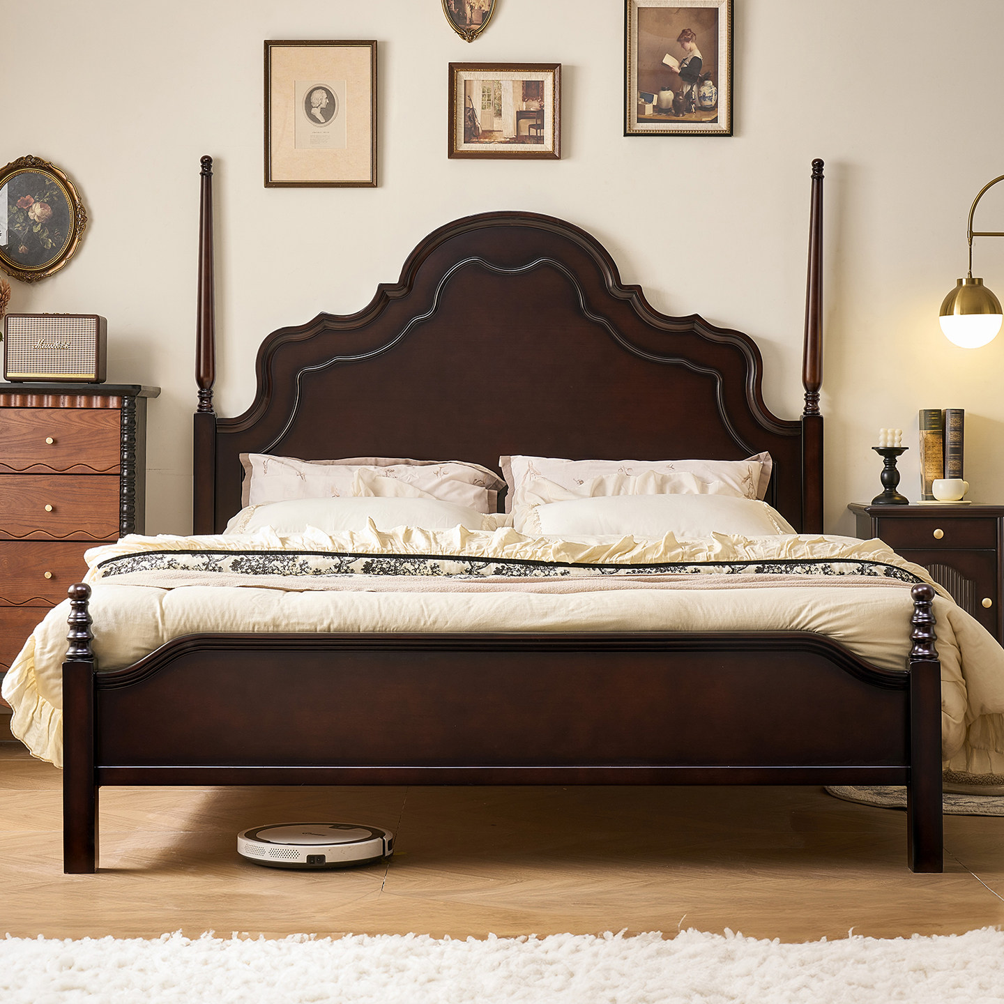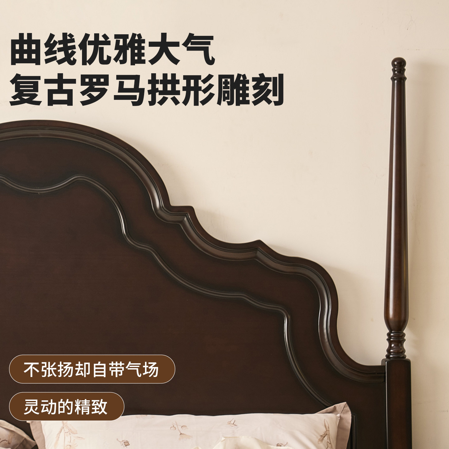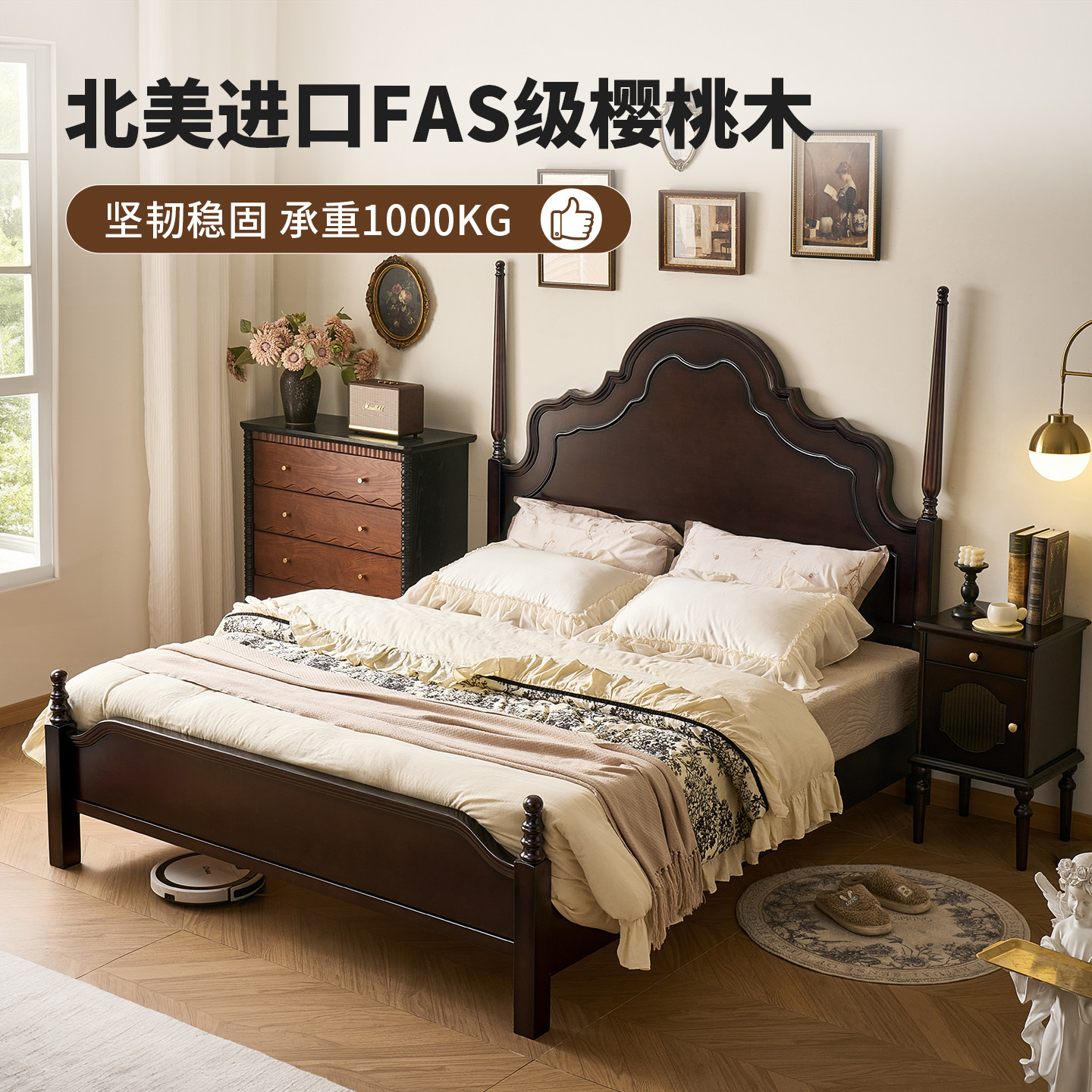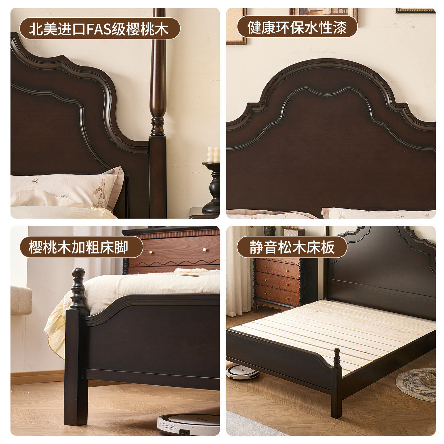 美式复古实木床卧室1.8米单双人床1.5米法式中古风樱桃木安娜床
