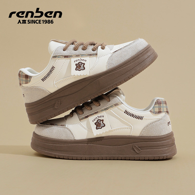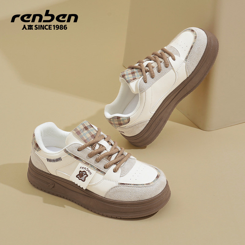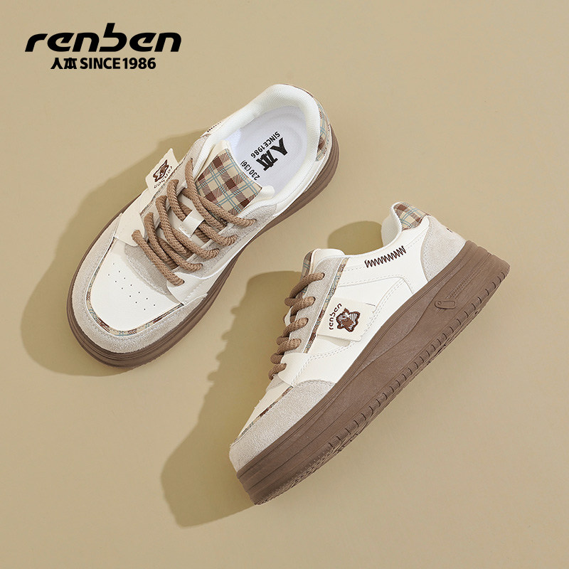 人本板鞋女款2026春季新款女鞋厚底休闲运动鞋子女百搭增高小白鞋