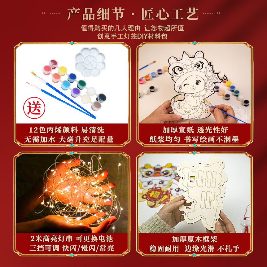 元宵节灯笼手工DIY材料包马年春节儿童非遗绘画古风宫灯手提花灯