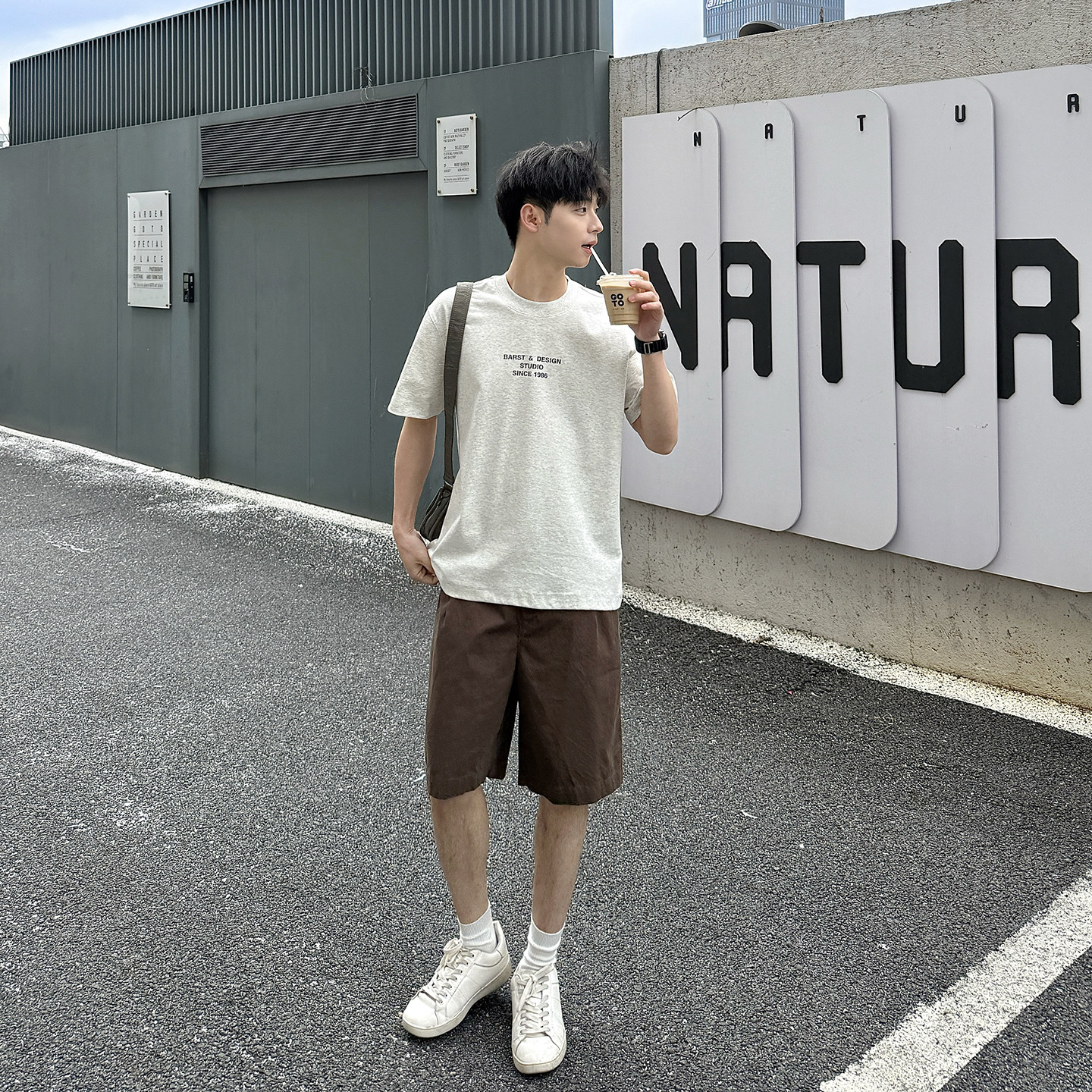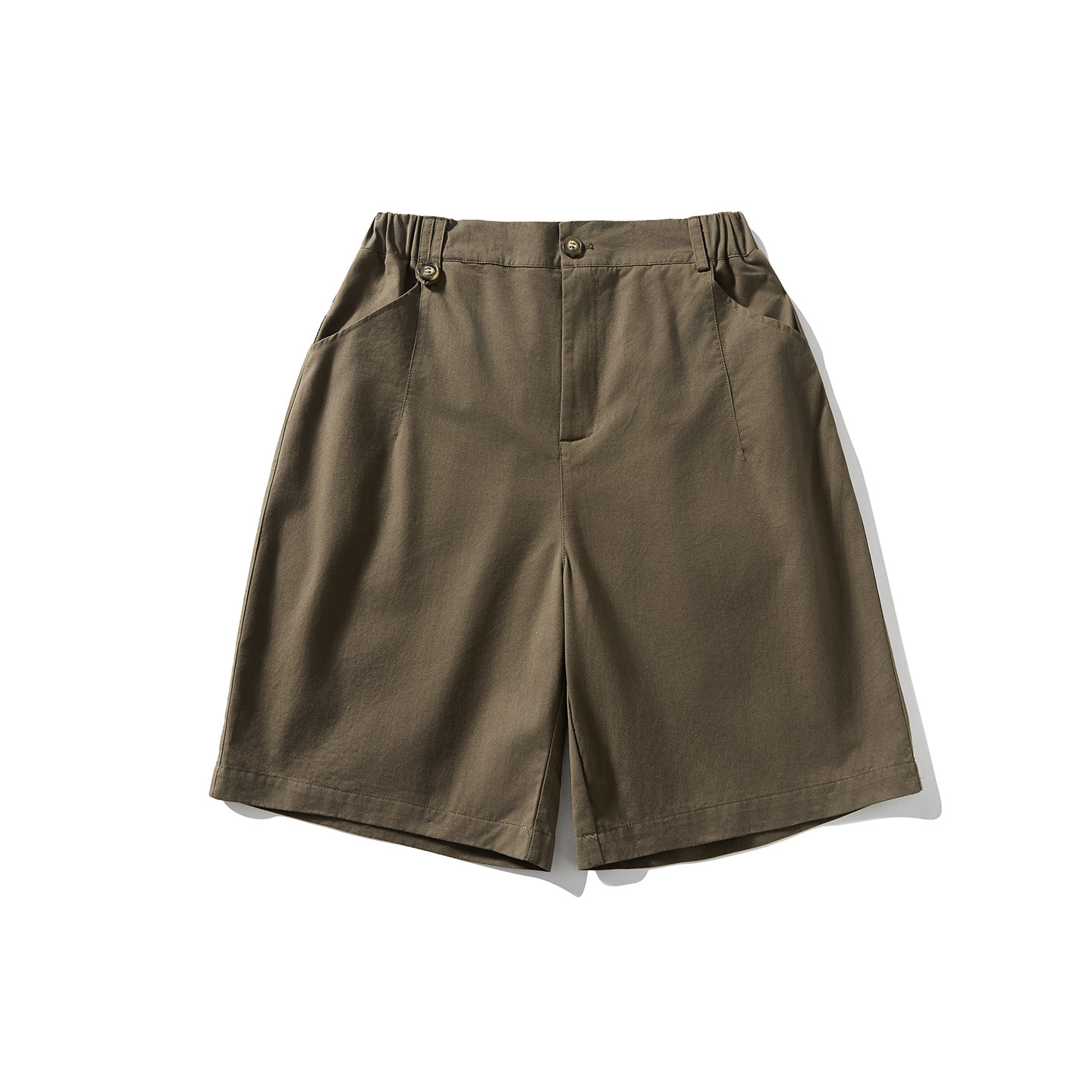 纯棉复古阔腿松紧腰五分裤男款夏季新款日系宽松休闲慵懒风中短裤