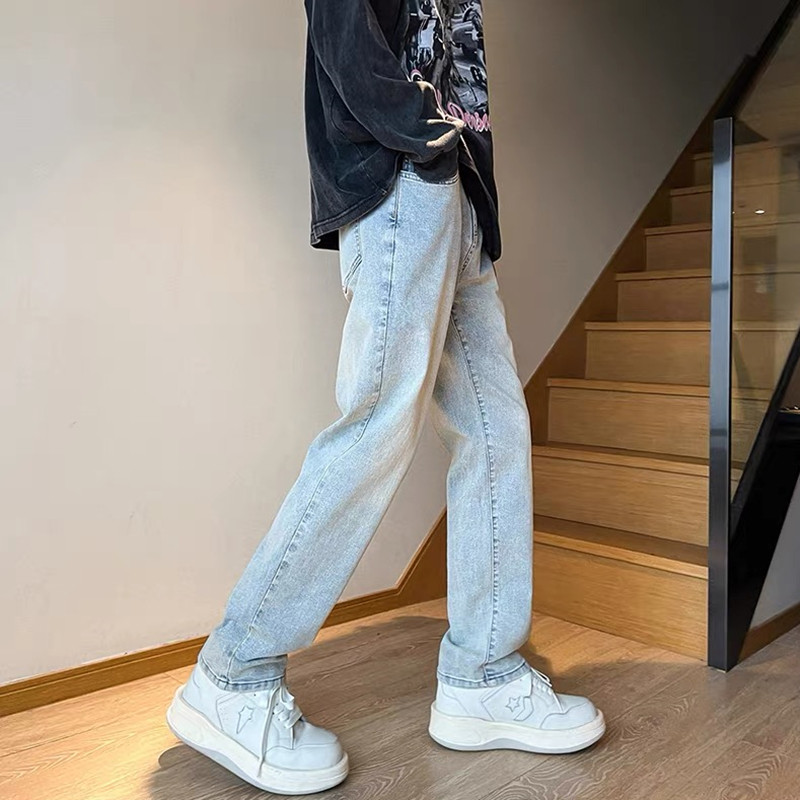 青少年牛仔裤男孩帅气高中初中学生夏季薄款大童宽松直筒休闲裤子