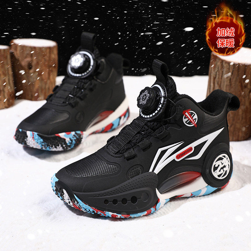 冬季加绒篮球鞋男童防侧翻运动鞋儿童中大童学生防滑耐磨气垫减震