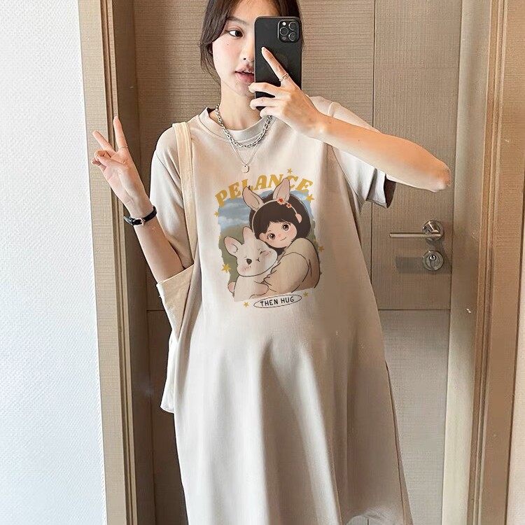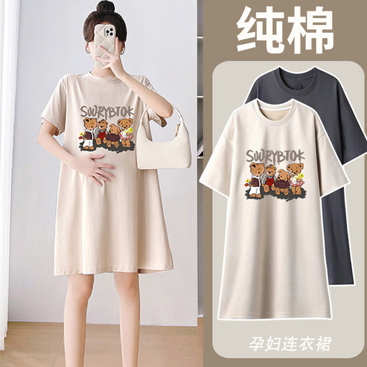 纯棉孕妇装大码女装短袖t恤夏季胖mm宽松显瘦中长款小个子连衣裙