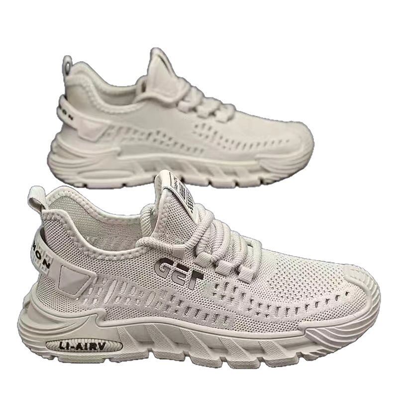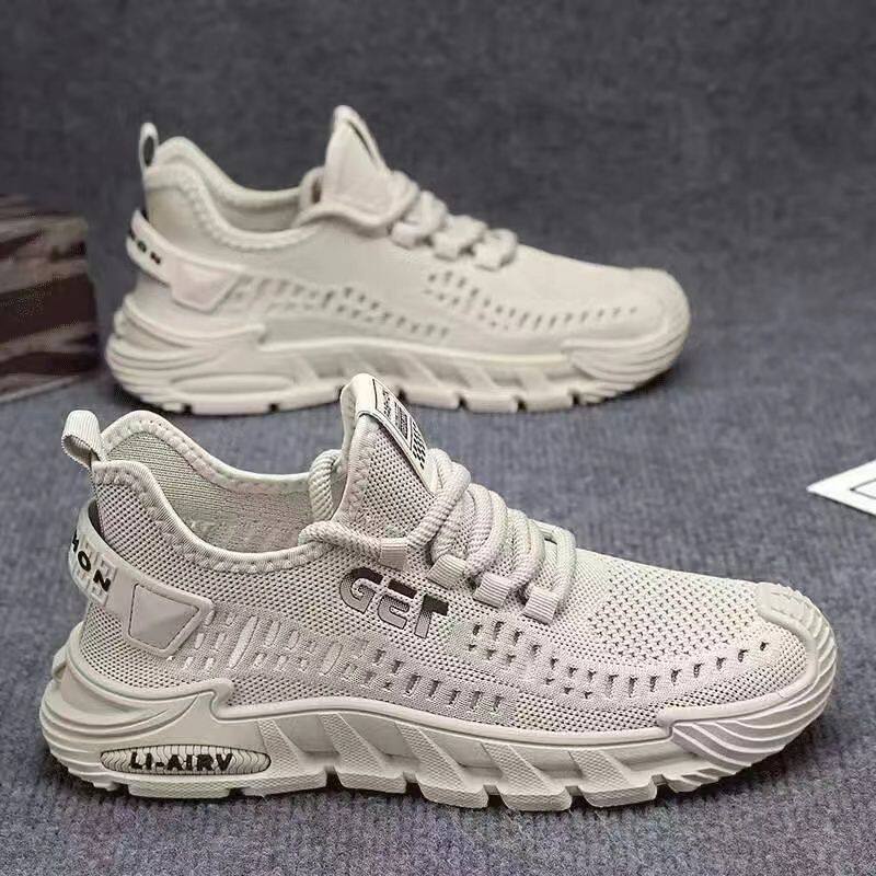 2026新款春季透气飞织网面鞋男士百搭跑步运动鞋软底休闲开车男鞋