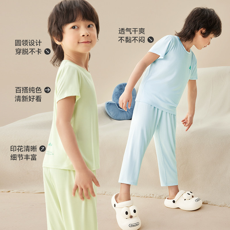 久岁伴【秒秒吸】男童睡衣春夏短袖宽松透气中大童抑菌家居服套装