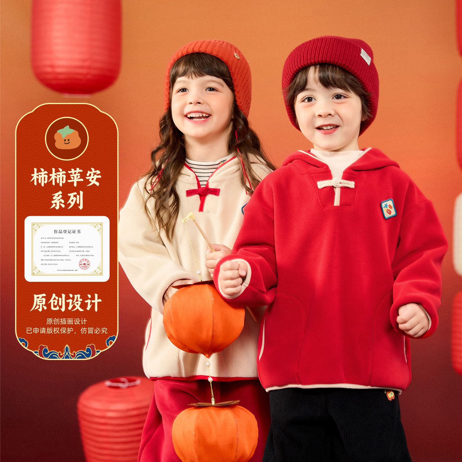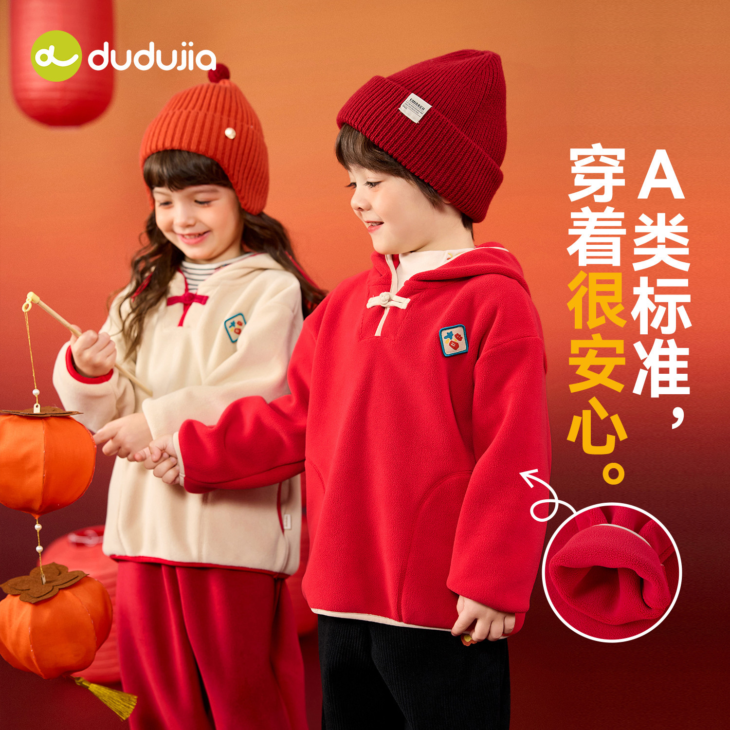 嘟嘟家儿童拜年服红色国风男童卫衣新中式女童年服男宝上衣洋气类