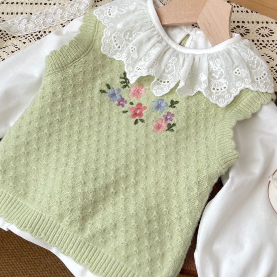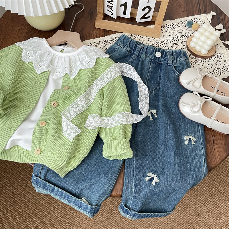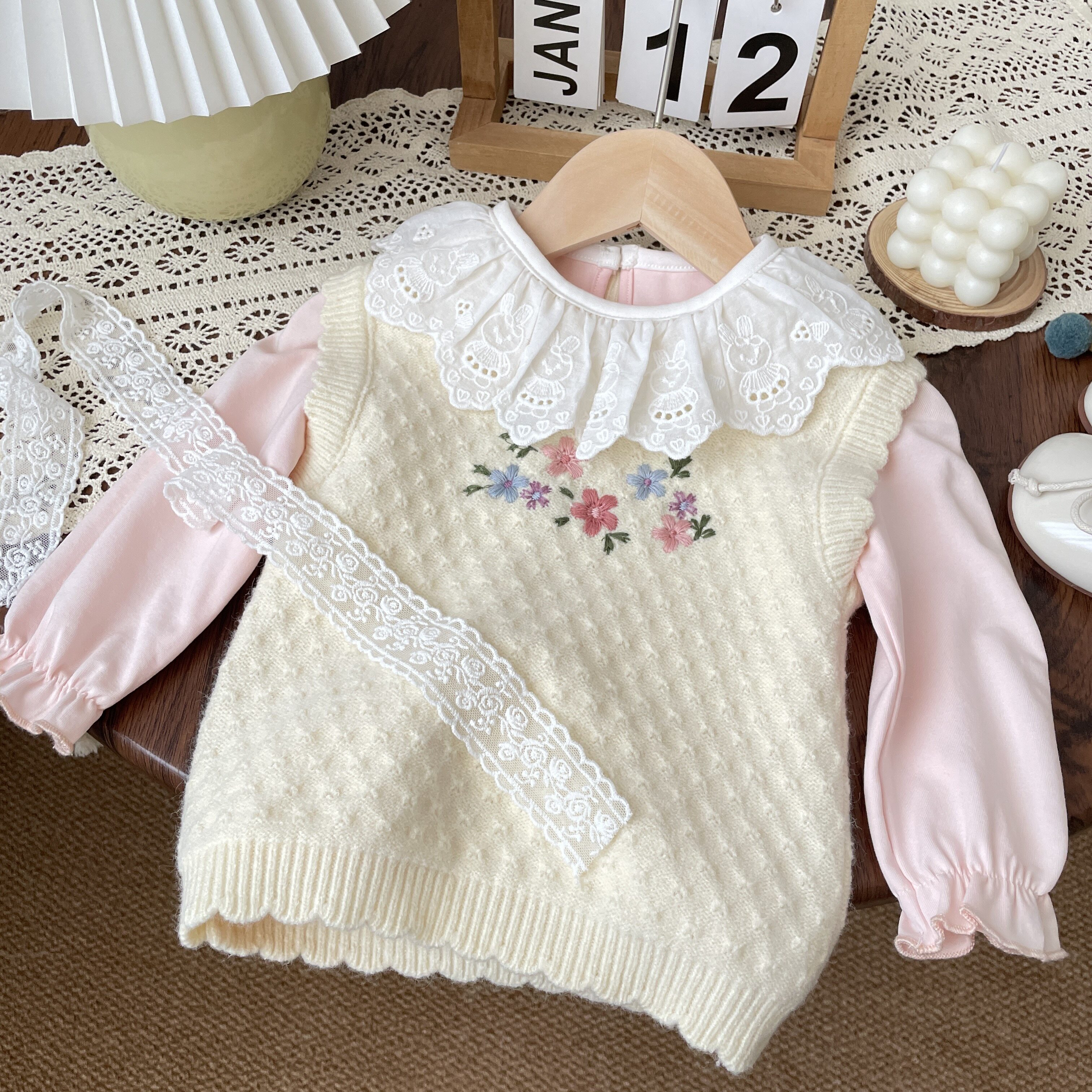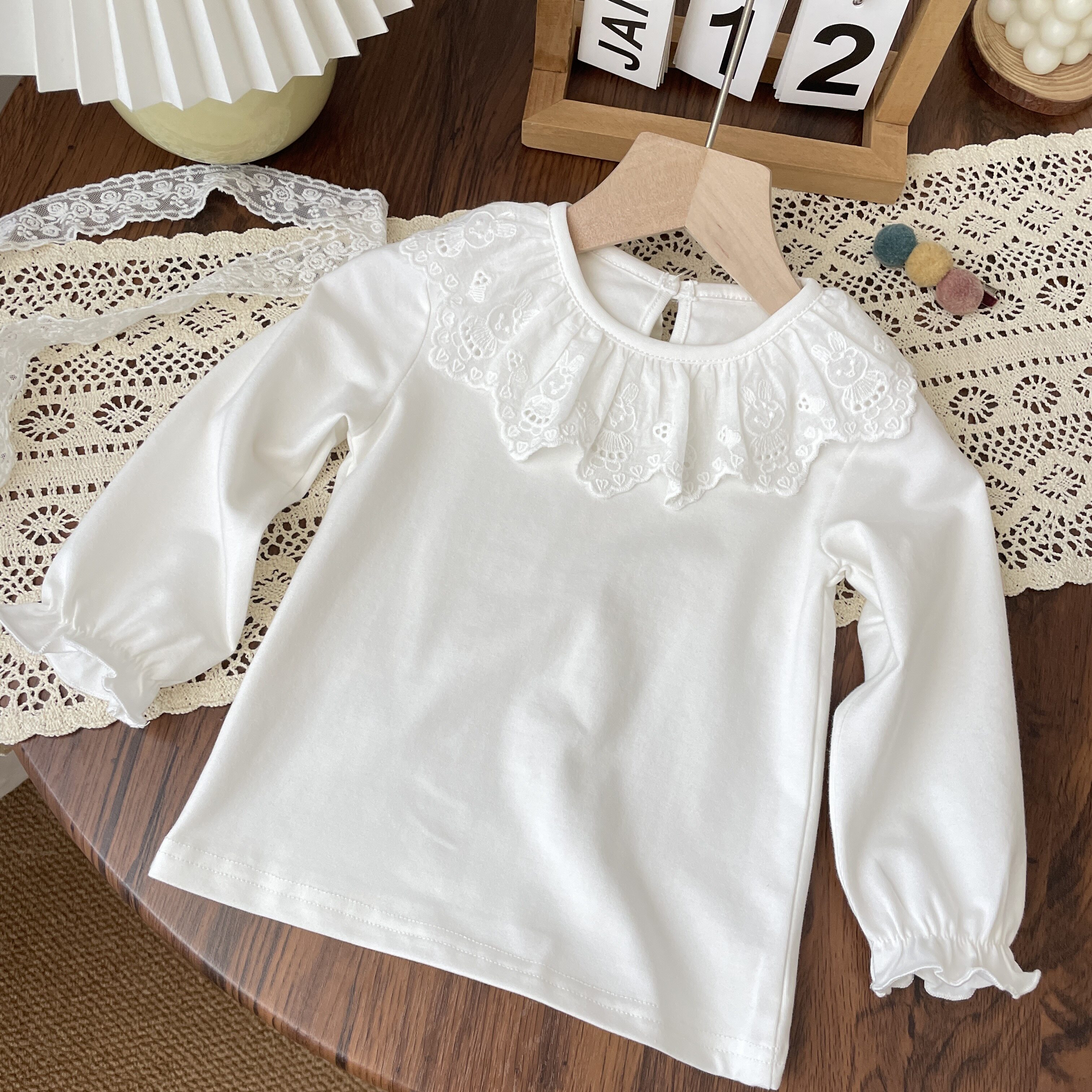 秋季女童宝宝婴儿蕾丝荷叶领长袖打底衫白色翻领上衣公主内搭纯棉