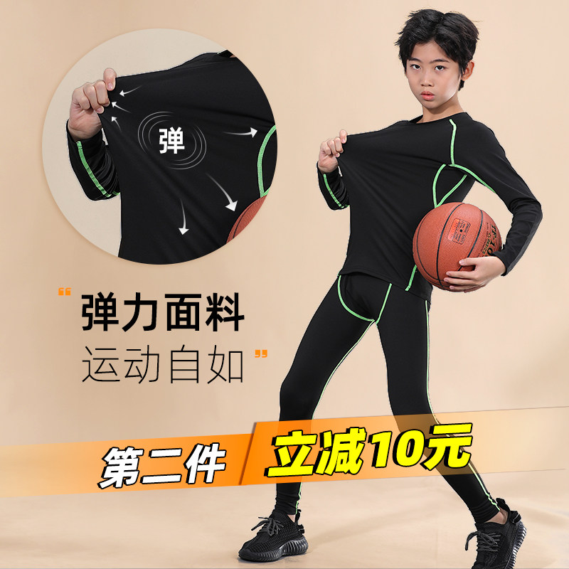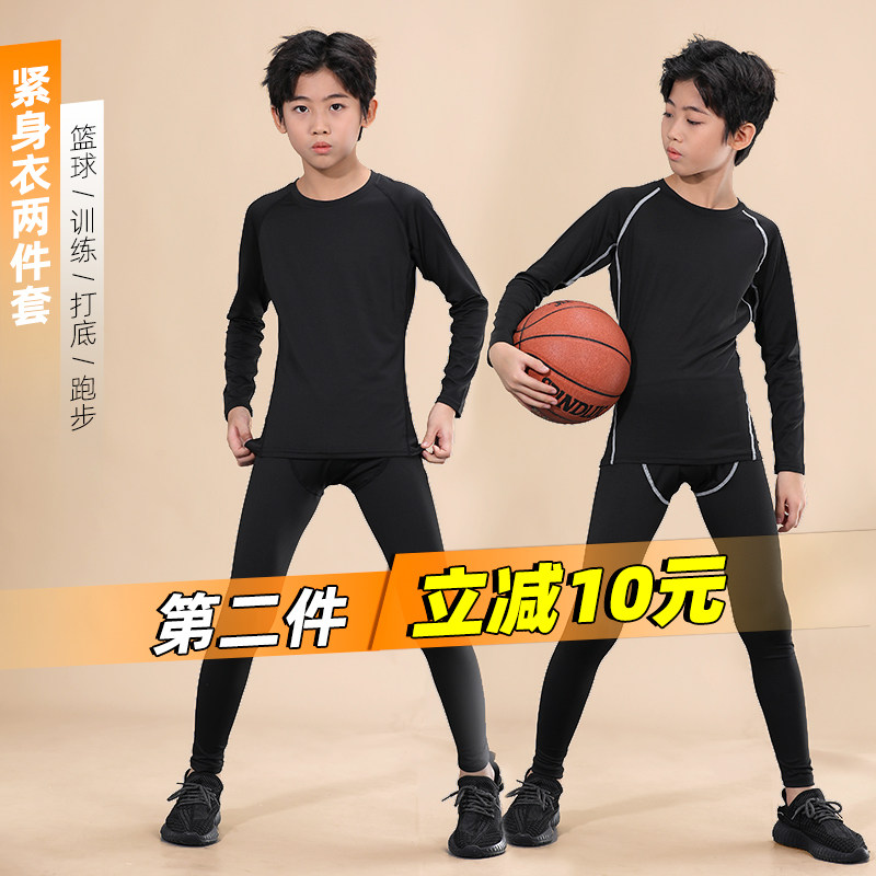 儿童紧身衣速干衣打底训练服长袖男女童成人足球篮球运动健身套装
