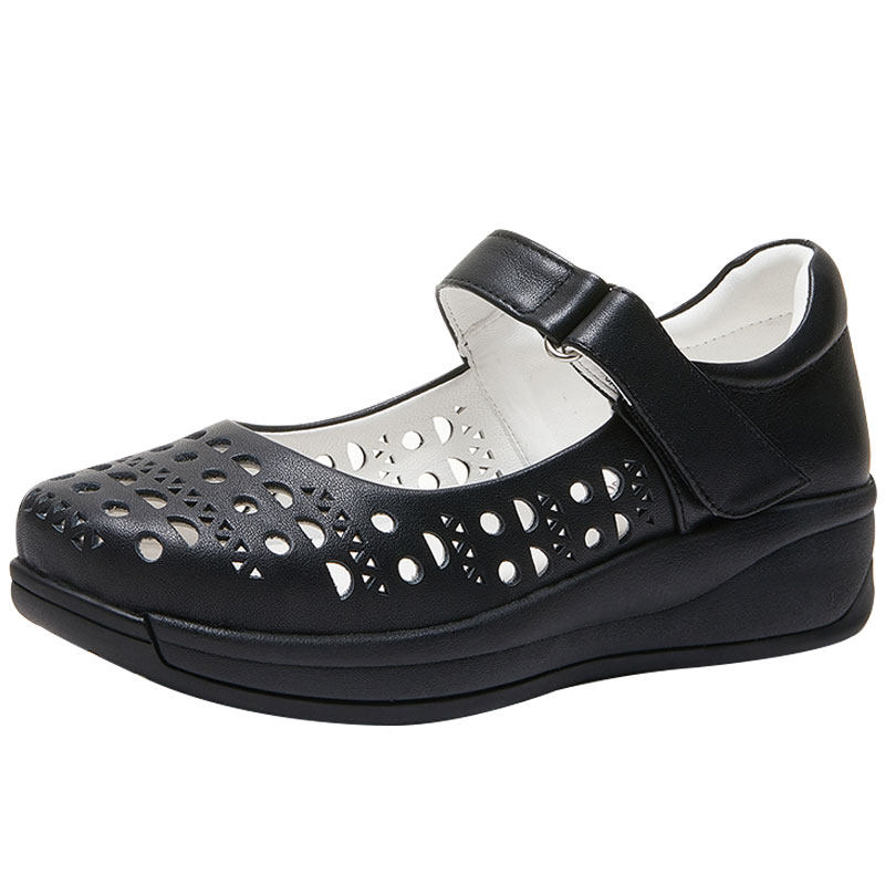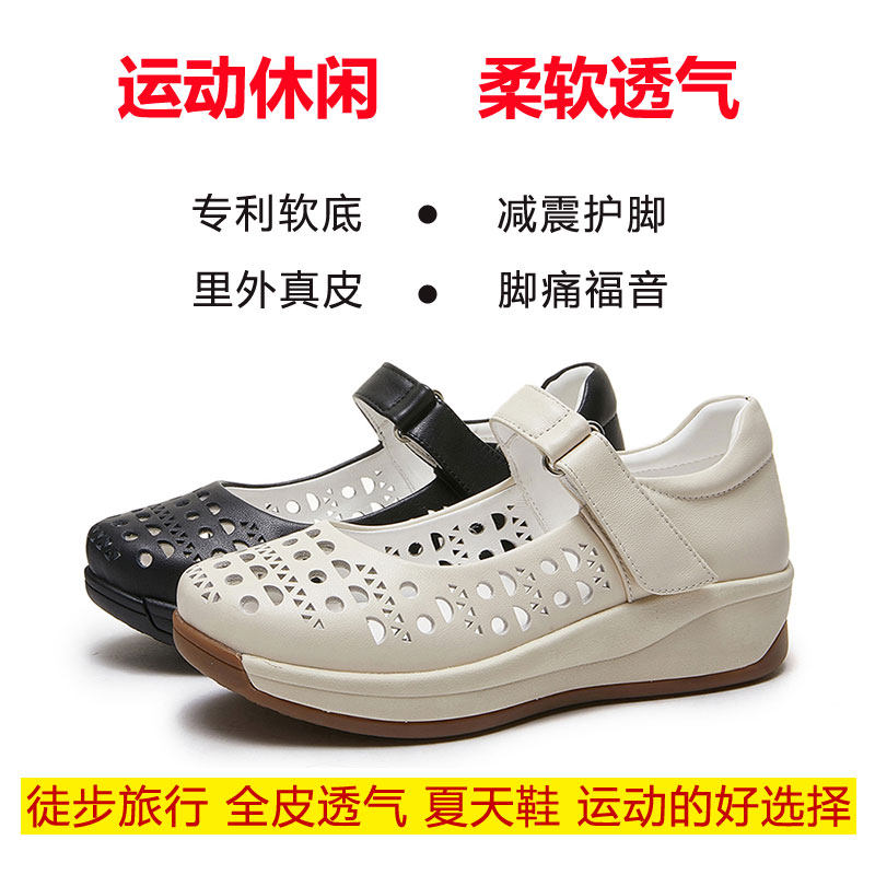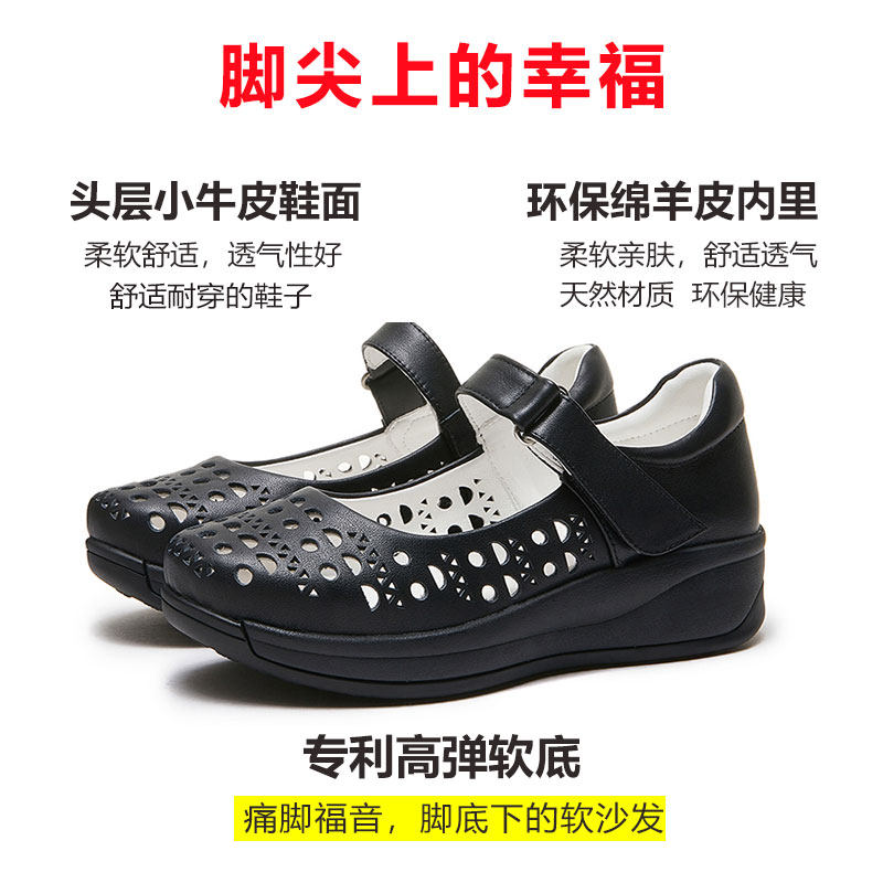 洞洞鞋凉鞋女真皮软底软面舒适妈妈鞋羊皮厚底透气镂空夏天女鞋